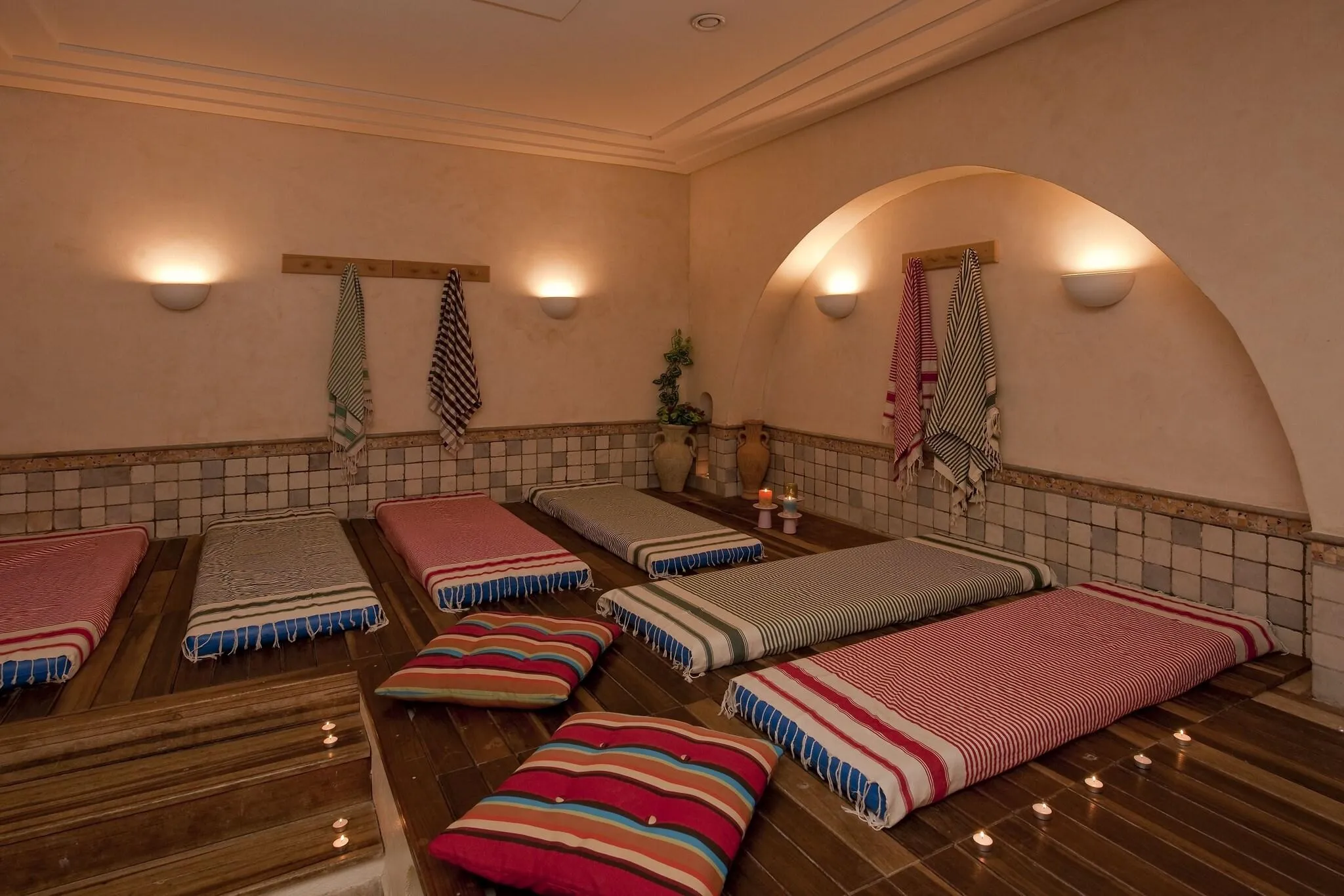 This hotel is situated directly on a splendid, fine, sandy beach, and is only 5 km from the centre of Hammamet. Tunis-Carthage International airport is about 60 km away. Puerto Deportivo is 4 km away. An à-la-carte restaurant, snack bar, other bars and the 'Arab Café' and a boutique are all features of the hotel. For the younger guests there is a playground and mini club for children. All rooms are well-equipped as standard and feature a balcony. Thehotel features 7 tennis courts and a horse-riding club and a number of other ground and water sports are available to guests. Next to the hotel there are 2 Golf courses, 'El Yasmin' and 'Citrus' with daily transfer service from the hotel (free). The hotel also features a spaciously-designed pool landscape with swimming pool, children's pool, sun bathing lawn with sun loungers and parasols. All meals are provided in buffet form. Location:2003 Year of most recent renovation; 382 Total number of rooms; 4 Number of floors (main building); 9 Suites Hotel type:hotel Methods of payment:American Express; MasterCard; Visa Distances (in meters):City centre (5000); Beach (4000) Room facilities (Standard room):1 Number of bedrooms; Bathroom; Disability-friendly bathroom; Shower; Wi-fi; Internet access; Direct dial telephone; Mini fridge; Individually adjustable air conditioning; Balcony; Smoking rooms; Extra beds on demand; Cot on demand Facilities:Wheelchair-accessible; Car park; 24-hour reception; Check-in hour; Check-out hour; Wi-fi; Room service (Extra Fee); Laundry service; Medical service (Extra Fee); Multilingual staff; Bellboy service; Air conditioning in public areas; Lift access; Newspaper stand; Shop; Garden; Terrace; Luggage room; Clothes dryer; Grill/BBQ; Private beach area Catering:Café; Bar; 4 Restaurant; Non-smoking area; Highchairs; Poolside snack bar Business:1 Conference room; Meeting room Entertainment:1 Indoor freshwater pool; 2 Outdoor freshwater pool; Children’s swimming area; Sun loungers; Parasols; Children playground; Kids’ club; Game room Health:Sauna; Steam bath; Turkish bath (hamam); Solarium ; Massage; Spa treatments