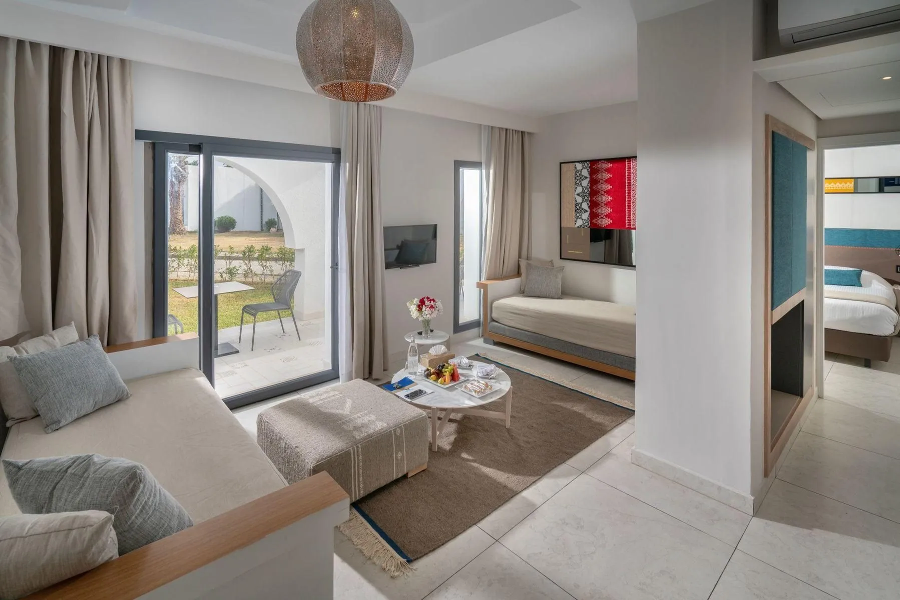 Descriere generală Hotelul The Mirage Resort and spa, care este deosebit de popular printre cei aflați în luna de miere, este situat în apropierea unei plaje cu nisip. Are propria plajă privată. Pe plajă sunt disponibile gratuit șezlonguri și umbrele de soare. Centrul turistic al orașului se află la aprox. 3 km. Orașul Nabeul este la aprox. 25 km (Sousse cca. 75 km, Tunis cca. 60 km). Magazinele sunt la aprox. 3 km de hotel, și veți găsi un supermarket la cca. 2 km. De asemenea, cele mai apropiate baruri și restaurante sunt la cca. 3 km. O discotecă aflată la aprox. 3 km vă invită la dans. Următoarele atracții pot fi accesate de la hotel: Carthage land (cca. 2 km). Există posibilitatea de a închiria mașini și motociclete. De asemenea, aveți în apropiere o stație de autobuz și o stație de taxi (cca. 2 km) cea ce vă vă oferă mobilitate în stațiune. În locuri mai îndepărtate se poate ajunge cu trenul. Gara cea mai apropiată este prin gara aflată la aproximativ 5 km. Pentru îngrijiri medicale în caz de urgență, există un spital la cca. 7 km distanță. Aeroportul (MIR) se află la aprox. 110 km. Un serviciu de transfer (contra cost) face legătura între hotel și aeroport. Un alt aeroport (NBE) este la cca. 50 km. Facilități Acesta a fost complet renovat în 2020, și oferă oaspeților recepție (check-in de la 00:00, check out până la 00:00), lobby cu bar, lift, aer condiționat, seif (gratuit), chioșc, minimarket, alte magazine, teatru, parcare (gratuită), sistem securizat de intrare și birou de schimb valutar. Pentru a satisface apetitul aveți la dispoziție în hotel 3 restaurante cu aer condiționat și un snackbar. Accesul la internet WiFi este disponibil gratuit pentru oaspeții hotelului. În plus, hotelul oferă o zonă de conferințe cu un total de 50 de locuri și cu acces la internet. Pentru oaspeții care depind de un scaun cu rotile, hotelul oferă un lift accesibil pentru scaune cu rotile și băi parțial accesibile pentru scaune cu rotile. Serviciul de concierge este gratuit. Room service, spălătorie, călcat și serviciul medical sunt disponibile la un cost suplimentar. Piscină Zona exterioară a hotelului include 3 piscine cu apă dulce precum și o piscină pentru copii. La piscine sunt disponibile gratuit șezlonguri și umbrele de soare. La barul de la piscină sunt disponibile băuturi răcoritoare (deschis între orele 08:00 - 00:00). Catering Mic dejun (între orele 07:00 - 10:00) bufet suedez. All Inclusive: micul dejun, prânzul și cina. Micul dejun, prânzul și cina pot fi servite numai în anumite restaurante. Sunt disponibile și meniuri pentru copii. Apă. Băutură de bun venit, 1 masă pe sejur în restaurantul à la carte, internet gratuit, minibar gratuit în cameră (limitat) și utilizarea gratuită a seifului (în baza unei garanții). Este posibil check-in mai devreme și check-out mai târziu (în funcție de disponibilitate). Sport/Leisure Oferte pentru sport și divertisment: Darts (gratuit), volei pe plajă, tenis de masă (gratuit), baschet, volei, yoga, biliard (contra cost), tenis (în baza unei garanții, la cca. 5 km distanță), fotbal și aerobic. La cca. 4 km de hotel este un teren de golf. Există serviciu de închiriere de biciclete. În plus parcare pentru biciclete (posibil contra cost). Oferte de wellness: Saună, hamam și masaje contra cost. Zonă de spa posibil contra cost. Divertisment pentru adulți: program de animație cu spectacole de seară și muzică live. Teren de joacă. Îngrijirea copiilor: mini club pentru copii (de la 4 - 12 ani), grădiniță și babysitting (contra cost). Sală de jocuri. Informații suplimentare Pentru anumite facilități sau activități se pot aplica taxe suplimentare. Unele servicii depind de anotimp și de condițiile climatice locale. Limbi de serviciu: engleză, germană, franceză și arabă. Carduri de credit: Euro/MasterCard și Visa. Doppel Deluxe Zimmer (Economy): Dotate cu living, pat dublu, pat twin sau pat single, pat pentru bebeluși (gratuit), mochetă, piscină comună, încălzire reglabilă individual, ceainic (gratuit), balcon, acces la internet (gratuit), seif (gratuit), aparat de cafea cu capsule (gratuit), TV prin satelit și canale locale precum și aer condiționat reglabil individual (din iunie până în septembrie). Baie cu cadă și duș. Prosoapele se schimbă zilnic. Doppel Deluxe Zimmer (Gartenblick): Dotate cu living, pat dublu, pat twin sau pat single, pat pentru bebeluși (gratuit), mochetă, piscină comună, încălzire reglabilă individual, ceainic (gratuit), balcon, acces la internet (gratuit), seif (gratuit), aparat de cafea cu capsule (gratuit), TV prin satelit și canale locale precum și aer condiționat reglabil individual (din iunie până în septembrie). Baie cu cadă și duș. Prosoapele se schimbă zilnic. Einzelbelegung Deluxe Zimmer (Gartenblick): Cameră cu living, pat dublu, pat twin sau pat single, pat pentru bebeluși (gratuit), mochetă, piscină comună, încălzire reglabilă individual, ceainic (gratuit), balcon, acces la internet (gratuit), seif (gratuit), aparat de cafea cu capsule (gratuit), TV prin satelit și canale locale precum și aer condiționat reglabil individual (din iunie până în septembrie). Baie cu cadă și duș. Prosoapele se schimbă zilnic. Single mit Kind Deluxe Zimmer (Gartenblick): Dotate cu living, pat dublu, pat twin sau pat single, pat pentru bebeluși (gratuit), mochetă, piscină comună, încălzire reglabilă individual, ceainic (gratuit), balcon, acces la internet (gratuit), seif (gratuit), aparat de cafea cu capsule (gratuit), TV prin satelit și canale locale precum și aer condiționat reglabil individual (din iunie până în septembrie). Baie cu cadă și duș. Prosoapele se schimbă zilnic. Doppel Standard Zimmer (Promotion): Cameră cu living, pat dublu, pat twin sau pat single, pat pentru bebeluși (gratuit), mochetă, piscină comună, î