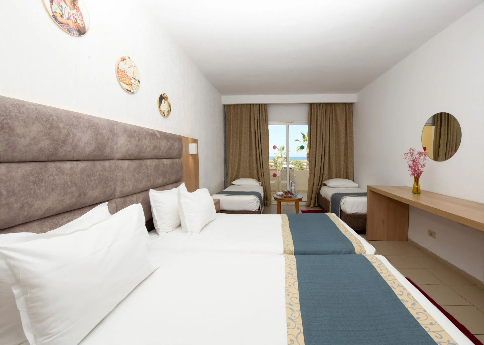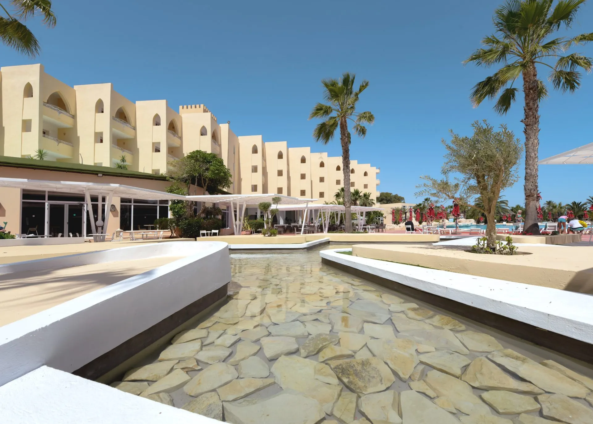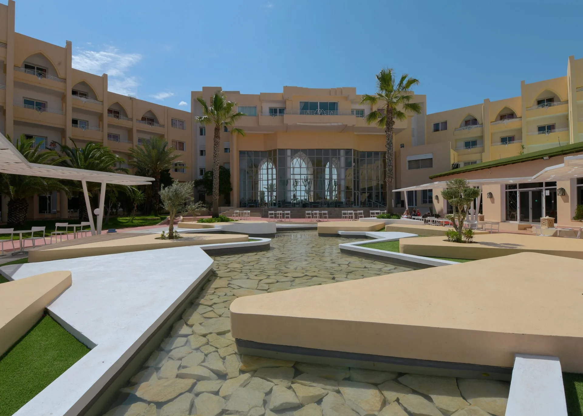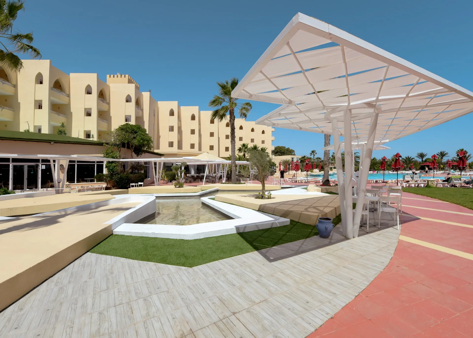 In the vicinity of the hotel`s own beach lies the 3 star hotel Eden Club Skanes. On the beach are cushions and sun umbrellas available. The hotel is equipped with a 24h reception (check-in is possible around the clock), a boutique, parking spaces as well as a TV lounge with satellite TV. Outside there is a children's pool, where sun loungers and sun umbrellas are available for free. There is also a laundry service available at an additional cost to customers. For your comfort there is a concierge service. The hotel requires that all guests pay a deposit upon arrival. Catering As catering services the hotel offers all-inclusive. Breakfast is offered from the buffet. Your physical well-being is catered for by the pool bar. Distances