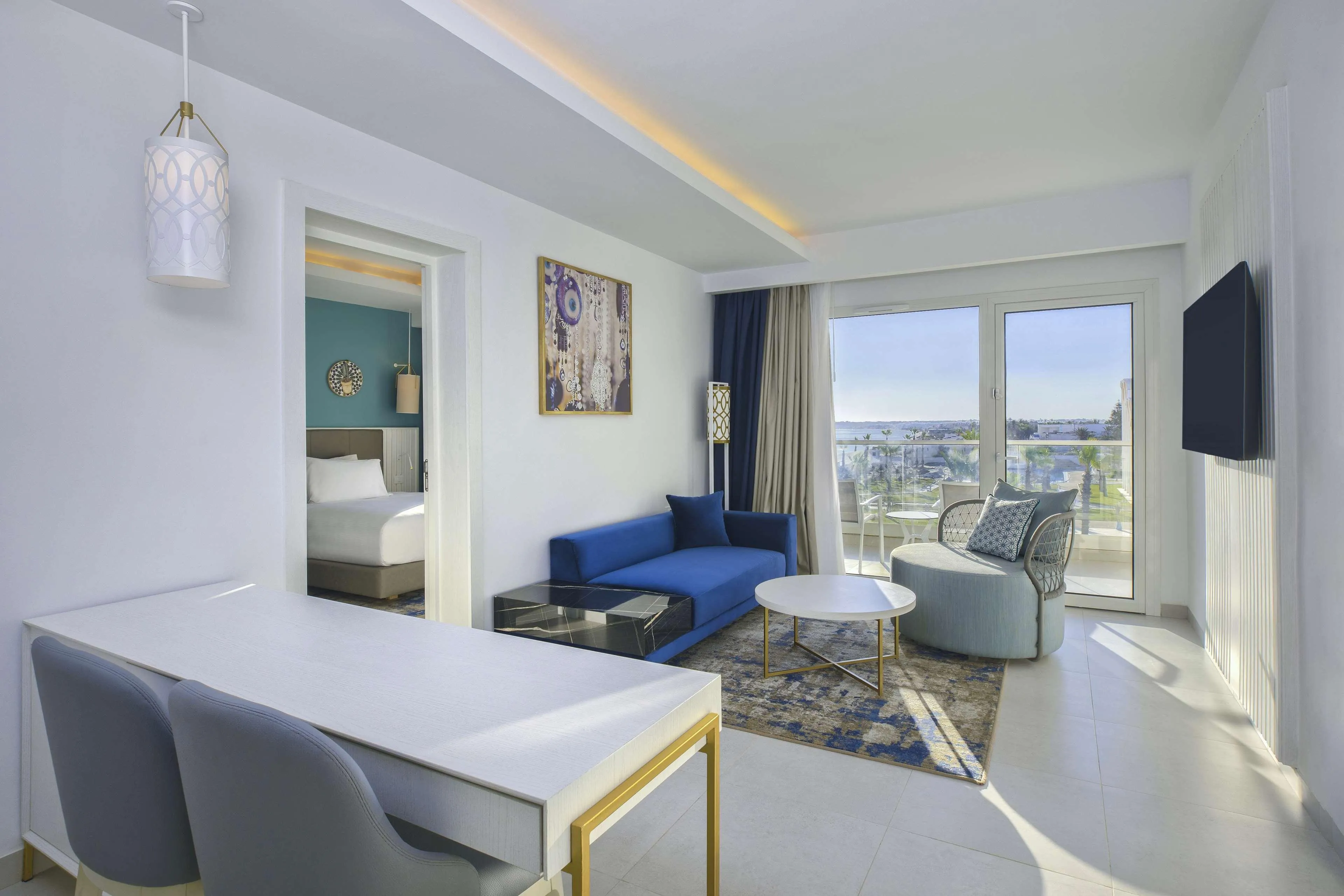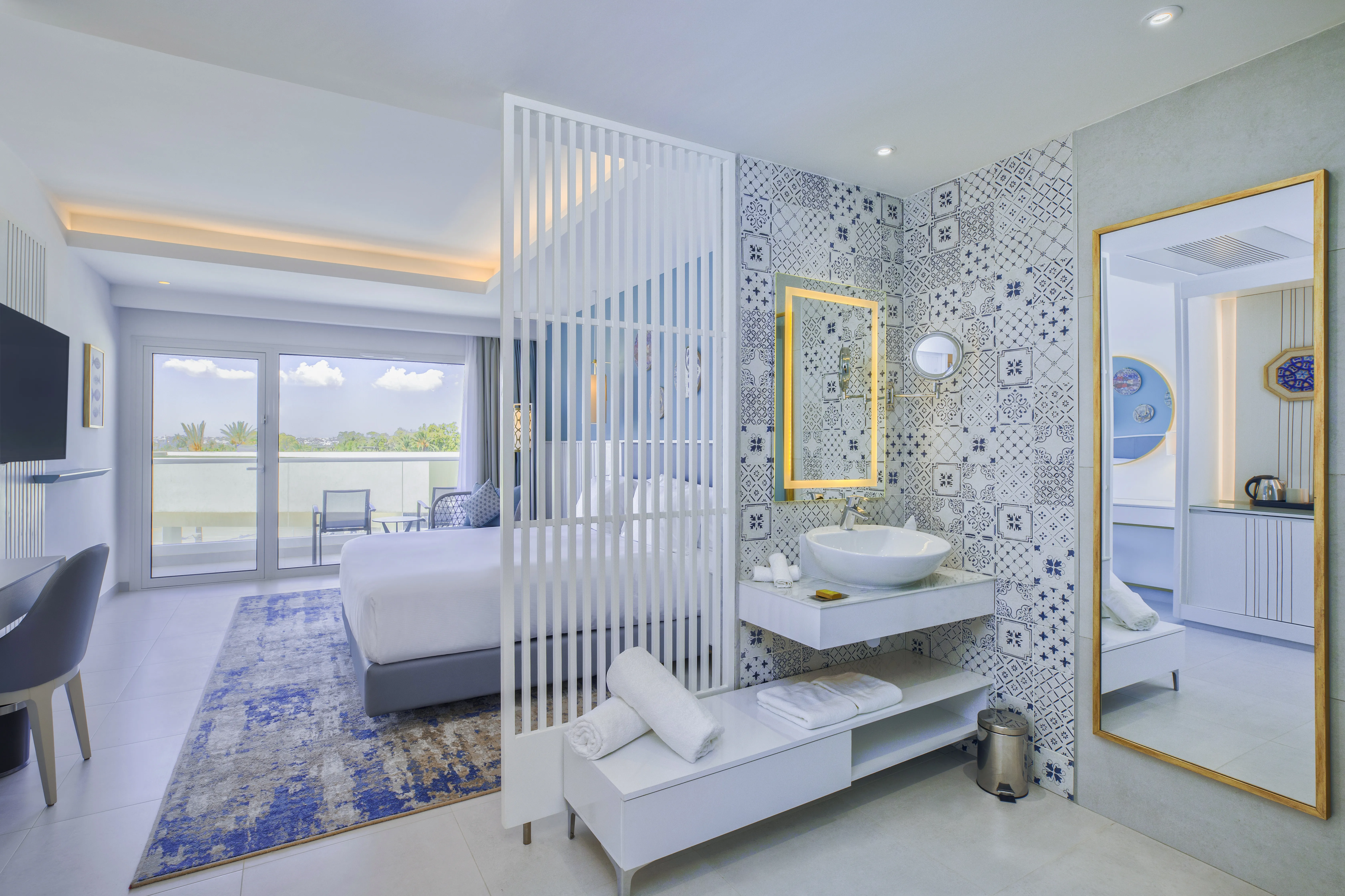 Our sea-front resort is less than ten minutes from International Monastir Airport MIR. Marina Cap Monastir, Yasmina Shopping Center, and Ribat of Monastir are 11 km from our doors. Museum Medina of Sousse is 13 km Away. We offer a ballroom, meeting rooms, and exhibition areas. Enjoy our restaurants and bars, pools for adults and children, and spa. Location:2023 Year of most recent renovation; Total number of rooms; 5 Number of floors (main building); 5 Number of floors (annexe); 76 Double rooms; 87 Suites; Family rooms; 4 Disability-friendly rooms; Connecting rooms Hotel type:resort Methods of payment:American Express; JCB; Diners Club; MasterCard; Visa; Visa Electrón; EuroCard Facilities:Wheelchair-accessible; Car park; 24-hour reception; Check-in hour; Check-out hour; Late Check-out; Wired Internet; Wi-fi; Transfer service (Extra Fee); Secure parking; Airport Shuttle (Extra Fee); Room service; Laundry service; Launderette (Extra Fee); Babysitting service (Extra Fee); Multilingual staff; 24-hour security (Extra Fee); Bellboy service (Extra Fee); Air conditioning in public areas; Smoke detector; Hotel safe (Extra Fee); Currency exchange facilities; Lift access; Garden (Extra Fee); Terrace (Extra Fee); Gym; Luggage room; Clothes dryer; Private beach area Catering:Bar (Extra Fee); Restaurant; Non-smoking area; Smoking area (Extra Fee); Poolside snack bar (Extra Fee); Show cooking; Swim-up bar; Air conditioning in Restaurant Business:Conference room; 4 Meeting room; Printer; Audio-visual equipment rental (Extra Fee); Fax (Extra Fee) Entertainment:Indoor freshwater pool (Extra Fee); 1 Indoor saltwater pool; Outdoor freshwater pool (Extra Fee); 1 Outdoor saltwater pool; Children’s swimming area (Extra Fee); Sun loungers; Parasols; WaterSlides; Children playground (Extra Fee); Kids’ club (Extra Fee); Entertainment programme for children; Game room; Pub Health:Sauna (Extra Fee); Hot tub (Extra Fee); Turkish bath (hamam); Solarium ; Massage (Extra Fee); Hairdressing salon (Extra Fee); Beauty salon; Spa centre (Extra Fee)