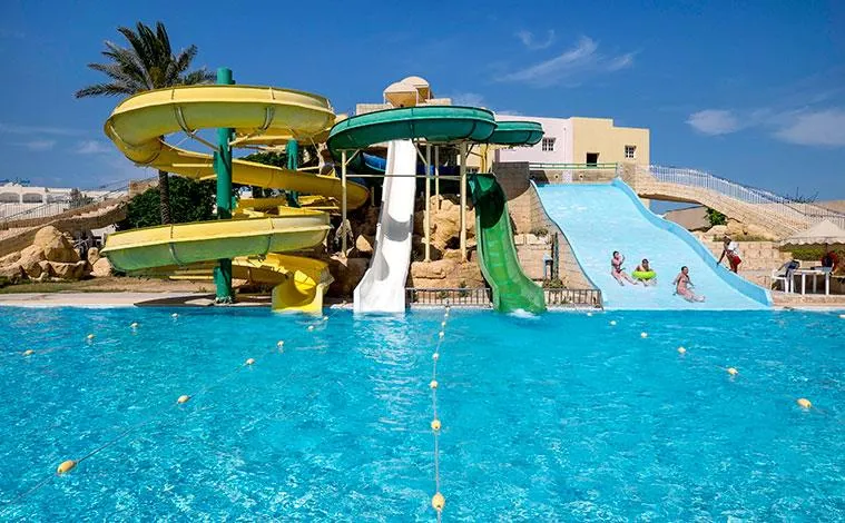 Plajă proprie, 2 piscine exterioare cu tobogane, piscină interioară cu mini-jacuzzi; Șezlonguri și umbrele gratuite atât la piscină, cât și la plajă.