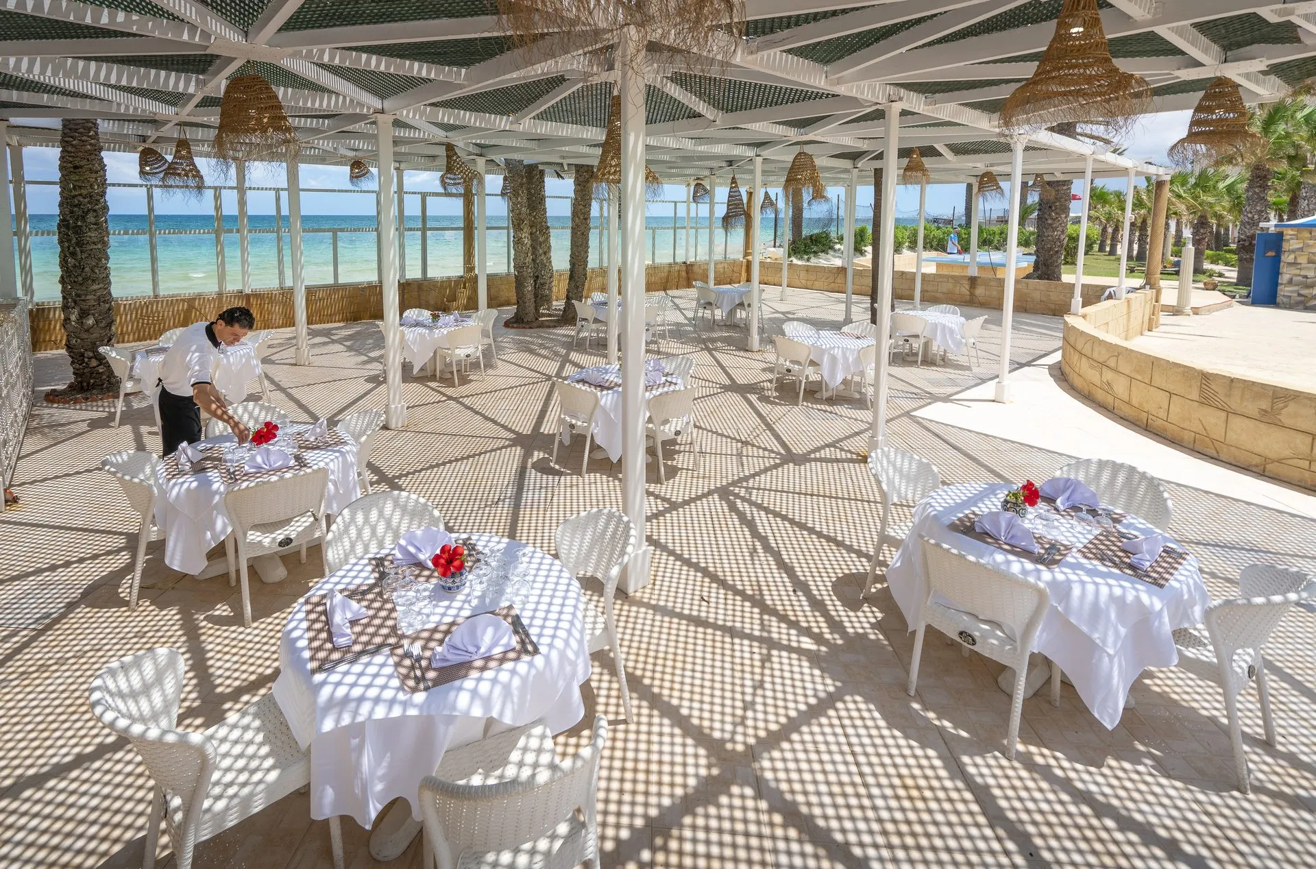 About 150 m from a beach lies the hotel Houda Golf Beach & Aquapark Hotel. The city centre is around 10 km away. On the beach are cushions and sun umbrellas available. The hotel is equipped with a reception (check-in is possible around the clock), Wi-Fi as well as a lift. Furthermore, you can relax outdoors on the terrace and in the garden. Guests at the accommodation can get a wake-up call from the hotel personnel. Visa is accepted as means of payment. Catering As catering services the hotel offers all-inclusive. Dinner is served as a buffet. When booking all-inclusive, one welcome drink and one meal in the à la carte restaurant are included. In the gastronomic area also vegetarian dishes are served. The drinks menu of the hotel includes soft drinks. Distances