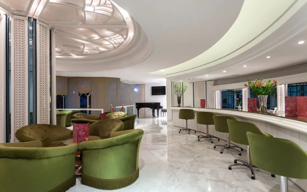 Dotări camere: baie cu duș, uscător de păr, aer condiționat, TV satelit, telefon, acces internet Wi-Fi (la unele camere), mini-bar, seif, balcon / terasă.