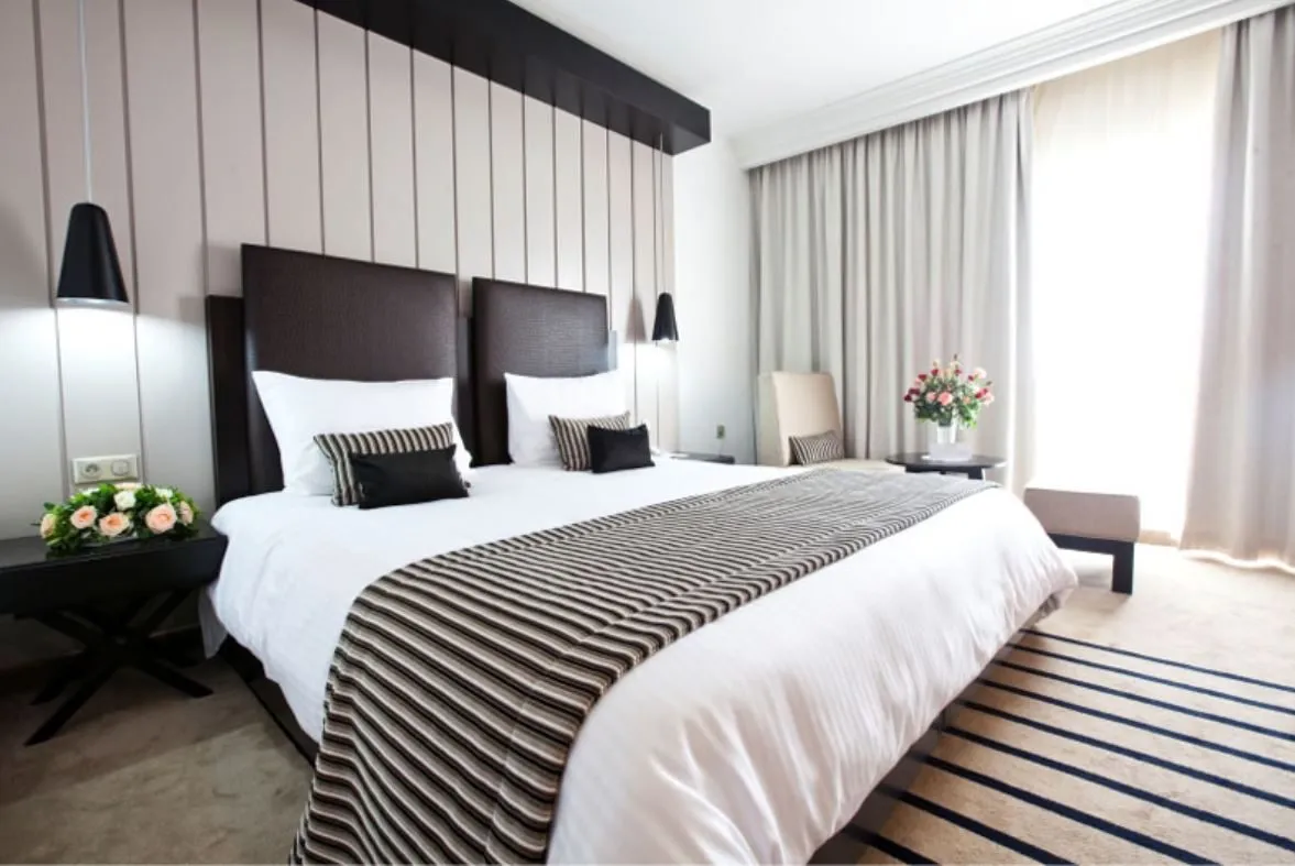 Descriere generala:Situată la 10. 0 kilometru(i) de centrul orașului, unitatea de cazare permite accesul ușor, pe jos, către o serie de locuri de interes. Un total de 515 camere de oaspeți sunt disponibile în incintă. Această unitate de cazare a fost recondiţionată în anul 2001. Oaspeţii pot profita de conexiunea Wi-Fi în spaţiile publice ale El Mouradi Palace. Recepţia este deschisă pe durata întregii zile. Din nefericire, nu există dormitoare în care cei care stau în această unitate de cazare să poată solicita un pat suplimentar pentru cei mici. nullCălătorii care sosesc cu maşina vor aprecia parcarea disponibilă la El Mouradi Palace. Oferta de întreţinere şi relaxare din unitate de cazare asigură servicii de primă clasă de revigorare şi destindere. Graţie opţiunilor de petrecere a timpului liber oferite aici, toți oaspeții care stau la această proprietate se pot bucura de o experienţă plină de distracţie. Acest hotel dispune de toate serviciile şi facilităţile necesare pentru un eveniment de afaceri reuşit. Unele dintre aceste servicii ale El Mouradi Palace pot fi contra cost. Locatia:2001 Anul celei mai recente renovări; 515 Numărul total al camerelor; 5 Numărul etajelor (clădirea principală); 5 Numărul etajelor (anexă); 452 Camere duble; 4 Suite junior; 11 Suite Tip hotel:hotel Metode de plata:Diners Club; MasterCard; Visa Distanta (in metri):Centrul orașului (10000); Cea mai apropiată stație de autobuz/metrou (35000) Facilitati camera (standard):1 Numărul dormitoarelor; Cameră de zi; Baie; Uscător de păr; Wi-Fi; Acces internet; TV; Radio; Minibar; Podele cu covor; Seif; Balcon; Terasă; Accesibil scaunelor cu rotile; Camere de fumători; Paturi suplimentare la cerere; Pătuțuri pentru copii la cerere Facilitati:Accesibil scaunelor cu rotile; Parcare; Recepție deschisă 24 de ore; Ora sosirii (check-in); Ora plecării (check-out); Acoperire telefon mobil; Wi-Fi; Parcare păzită; Transfer la aeroport; Serviciu în cameră; Serviciu de spălătorie (Extra Fee); Servicii medicale; Serviciu de babysitting; Personal multilingv; Pază 24 de ore; Serviciu de bagaje; Seif în hotel; Facilități de schimb valutar; Lift; Magazin; Grădină; Terasă; Terasă la soare; Sală de sport; Ziare; Sală de bagaje; Uscător de rufe; Zonă privată de plajă Catering:Cafenea; Bar; 2 Restaurant; Snack bar lângă piscină; Demonstrații de gătit Afaceri:6 Sală de conferințe; Sală de ședințe; Proiector; Centru de afaceri Divertisment:1 Piscină interioară cu apă dulce; 1 Piscină în aer liber cu apă dulce; 1 Zonă de înot pentru copii; Șezlonguri; Parasolare; Club de copii; Program de divertisment pentru adulți; Sală de jocuri; Club de noapte Sanatate:Saună; Baie de aburi; Baie turcească (hamam) (Extra Fee); Masaj; Tratamente spa (Extra Fee); Salon de coafură (Extra Fee); Centru spa (Extra Fee) Tipuri de mancare:Mic dejun; Mic dejun bufet; Prânz bufet; Cină a la carte; Demipensiune; Pensiune completă fără băuturi; Pensiune completă cu băuturi non-alcoolice Lucruri de retinut:Clădire de nefumători Sporturi:Banana boat ride (Extra Fee); Jet ski (Extra Fee); Tragere cu arcul; Volei de plajă; Biliard; Tenis