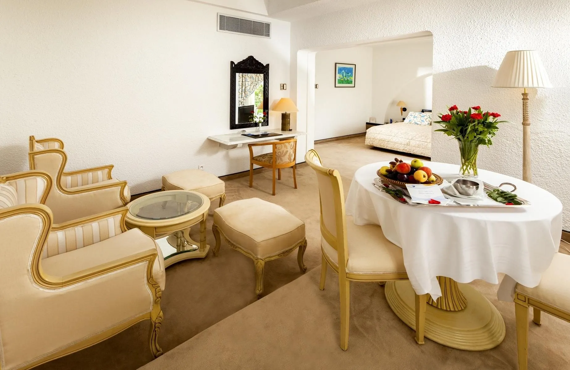 Descriere generală Hotelul Hasdrubal Thalassa and Spa Port El Kantaoui este situat la cca. 200 m de o plajă privată cu nisip. Pe plajă sunt disponibile gratuit șezlonguri și umbrele de soare. Centrul turistic al stațiunii se află la aprox. 400 m. Orașul SOUSSE este la aprox. 8 km (MONASTIR cca. 30 km). Veți găsi un supermarket la cca. 300 m. Cele mai apropiate baruri și restaurante sunt la cca. 400 m distanță. Următoarele atracții pot fi accesate de la hotel: Port El Kantaoui (cca. 400 m), Aqua Palace (cca. 200 m) și Medina Of Souse (cca. 8 km). Hotelul dispune de serviciu de rentacar. De asemenea, aveți în apropiere o stație de autobuz (cca. 300 m) și o stație de taxi (cca. 30 m) cea ce vă vă oferă mobilitate în stațiune. În locuri mai îndepărtate se poate ajunge cu trenul. Gara cea mai apropiată este prin gara aflată la aproximativ 8 km. Pentru îngrijiri medicale în caz de urgență, există un spital la cca. 8 km distanță. Aeroportul (NBE) se află la aprox. 30 km. Un serviciu de transfer (contra cost) face legătura între hotel și aeroport. Un alt aeroport (MIR) este la cca. 20 km. Facilități Încântătorul hotel dispune de 3 etaje și peste 231 camere. Acesta oferă oaspeților săi recepție deschisă 24h (check-in de la 13:00, check out până la 12:00), lobby cu bar, 2 lifturi, aer condiționat, seif (gratuit), magazin, parcare (gratuită) și birou de schimb valutar. Pentru a servi masa vă stau la dispoziție 3 restaurante cu aer condiționat. Accesul la internet WiFi este disponibil gratuit pentru oaspeții hotelului. Pentru evenimente de afaceri, hotelul oferă o zonă de conferințe cu acces la internet. Serviciul de menaj și serviciul de concierge sunt gratuite. Room service, spălătorie, călcat și serviciul medical sunt disponibile la un cost suplimentar. Piscină În grădinile acestui hotelul decorat în stil mediteranean există o piscină cu apă dulce. Acolo sunt disponibile gratuit șezlonguri și umbrele de soare. Un bar lângă piscină oferă oaspeților băuturi răcoritoare. Catering Mic dejun (între orele 06:00 - 10:00) bufet suedez. Demipensiunea include micul dejun și cina. Pensiunea completă include micul dejun, prânzul și cina. Micul dejun și prânzul și cina pot fi servite numai în anumite restaurante. Sport/Leisure Este disponibil: Tenis (gratuit, la cca. 200 m distanță), tenis de masă (posibil contra cost), volei și fitness. La cca. 200 m de hotel, sunt oferite sporturi nautice precum jet ski și schi nautic (unele de către furnizori locali). La cca. 2 km de hotel este un teren de golf. Există serviciu de închiriere de biciclete. Oferte de wellness: Zonă de spa cu terasă la soare, saună, jacuzzi, baie turcească, hamam și masaje contra cost. Divertisment pentru adulți: program de animație cu muzică live. Îngrijirea copiilor: babysitting (contra cost). Informații suplimentare Pentru anumite facilități sau activități se pot aplica taxe suplimentare. Unele servicii depind de anotimp și de condițiile climatice locale. Limbi de serviciu: engleză, germană, franceză și italiană. Carduri de credit: American Express, Euro/MasterCard și Visa. Klassisch Paket (SpaPackage): Dotate cu pat suplimentar, încălzire controlată centralizat, ceainic (gratuit), acces la internet (gratuit), seif (gratuit) și TV cu ecran plat prin satelit precum și aer condiționat controlat central. Relax Paket (SpaPackage): Dotate cu pat suplimentar, încălzire controlată centralizat, ceainic (gratuit), acces la internet (gratuit), seif (gratuit) și TV cu ecran plat prin satelit precum și aer condiționat controlat central. Double Standard Zimmer: Dotate cu pat suplimentar, încălzire controlată centralizat, ceainic (gratuit), acces la internet (gratuit), seif (gratuit) și TV cu ecran plat prin satelit precum și aer condiționat controlat central. Double Standard Zimmer (Meerblick): Cameră cu pat suplimentar, încălzire controlată centralizat, ceainic (gratuit), acces la internet (gratuit), seif (gratuit) și TV cu ecran plat prin satelit precum și aer condiționat controlat central. Einzelbelegung Standard Zimmer: Cameră cu pat suplimentar, încălzire controlată centralizat, ceainic (gratuit), acces la internet (gratuit), seif (gratuit) și TV cu ecran plat prin satelit precum și aer condiționat controlat central. Einzelbelegung Standard Zimmer (Meerblick): Dotate cu pat suplimentar, încălzire controlată centralizat, ceainic (gratuit), acces la internet (gratuit), seif (gratuit) și TV cu ecran plat prin satelit precum și aer condiționat controlat central. Single mit Kind Standard Zimmer: Cameră cu pat suplimentar, încălzire controlată centralizat, ceainic (gratuit), acces la internet (gratuit), seif (gratuit) și TV cu ecran plat prin satelit precum și aer condiționat controlat central. Single mit Kind Standard Zimmer (Gartenblick): Cameră cu pat suplimentar, încălzire controlată centralizat, ceainic (gratuit), acces la internet (gratuit), seif (gratuit) și TV cu ecran plat prin satelit precum și aer condiționat controlat central.