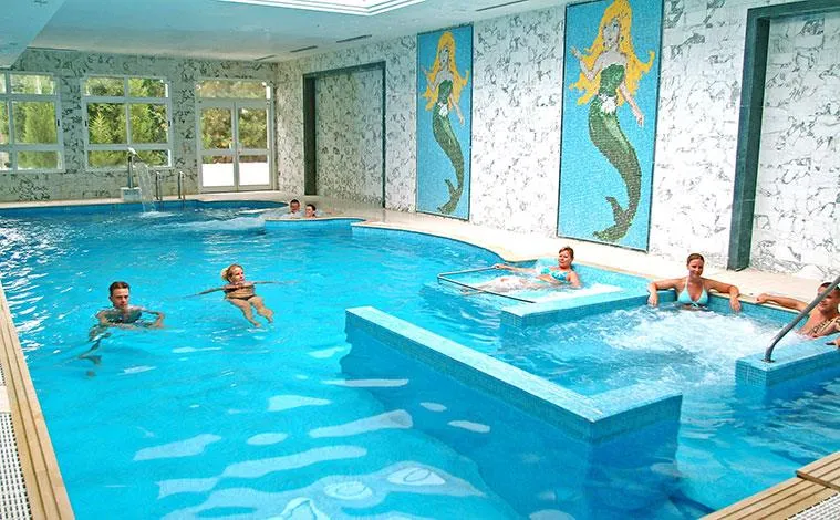 Piscină principală, piscină cu apă sărată și jacuzzi, piscină pentru copii, două piscine interioare;