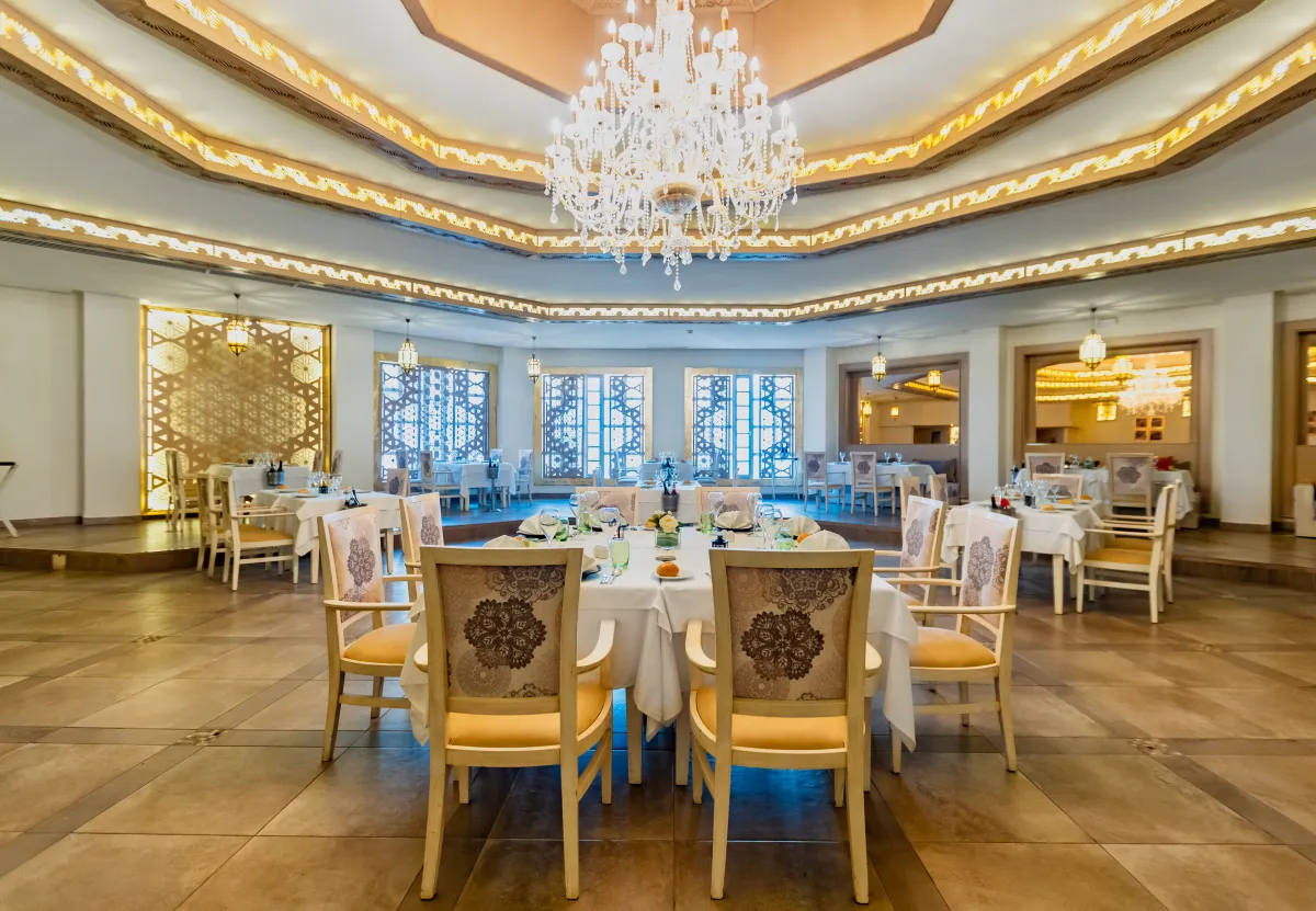 Restaurant principal tip bufet „Grenadier”, Snack Restaurant „ Bistro Bar”; Restaurante a la carte: „Le Laurier” oriental, mediteranean; Baruri: „Jasmin” Lobby Bar, Pool Bar, „Cafe Maure” Shisha Bar.
