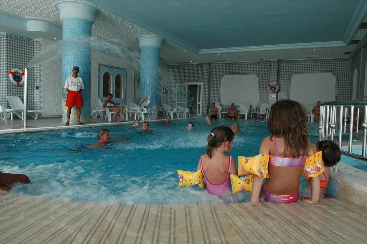 Descriere generală Hotelul Jinene Beach, care este deosebit de popular printre cei aflați în luna de miere, este situat la cca. 5 km de Sousse (Monastir cca. 20 km). Cea mai apropiată plajă, o plajă privată cu nisip se află în imediată vecinătate. Pe plajă sunt disponibile gratuit șezlonguri și umbrele de soare. Magazinele sunt la aprox. 3 km de hotel, și veți găsi un supermarket la cca. 800 m. Cele mai apropiate baruri și restaurante sunt la cca. 1 km distanță. O discotecă aflată la aprox. 3 km vă invită la dans. De asemenea, la cca. 5 km de hotel este un cinematograf. Următoarele atracții pot fi accesate de la hotel: Port El Kantaoui (cca. 2 km). Locul de cazare are la dispoziție mașini de închiriat. De asemenea, aveți în apropiere o stație de taxi (cca. 20 m) cea ce vă garantează mobilitatea în stațiune. În locuri mai îndepărtate se poate ajunge cu trenul. Gara cea mai apropiată este prin gara aflată la aproximativ 5 km. Pentru îngrijiri medicale în caz de urgență, există un spital la cca. 3 km distanță. Aeroportul (NBE) se află la aprox. 40 km. Un alt aeroport (MIR) este la cca. 20 km. Facilități Hotelul de wellness dispune de 4 etaje și peste 223 camere. Acesta oferă oaspeților săi recepție deschisă 24h (check-in de la 00:00, check out până la 00:00), lobby cu bar, 2 lifturi, aer condiționat, seif (contra cost), magazin, discotecă, parcare (gratuită), sistem securizat de intrare și birou de schimb valutar. Pentru a satisface apetitul vă stau la dispoziție un restaurant cu aer condiționat și un snackbar. Este posibil să se aplice taxe pentru utilizarea un internet-corner. Serviciul de menaj și serviciul de concierge sunt gratuite. Spălătorie, călcat și serviciul medical sunt disponibile la un cost suplimentar. Piscină Zona exterioară a hotelului decorat în stil mediteranean include o piscină cu apă dulce precum și o piscină separată pentru copii și un tobogan de apă. La piscină sunt disponibile gratuit șezlonguri și umbrele de soare. Catering Mic dejun bufet suedez. Demipensiunea include micul dejun și cina. Demipensiunea Plus include micul dejun și cina. Pensiunea completă include micul dejun, prânzul și cina. Micul dejun și prânzul și cina pot fi servite numai în anumite restaurante. All Inclusive: micul dejun, prânzul și cina. Micul dejun, prânzul și cina pot fi servite numai în anumite restaurante. Apă, băuturi răcoritoare, cafea și ceai, prăjituri și produse de patiserie, bere, vin, aperitive și cocktailuri. Sport/Leisure Este disponibil: Aerobic, biliard (contra cost), tenis de masă (gratuit), tenis (contra cost) și minigolf. Pe plajă puteți practica sporturi nautice precum schi nautic (unele de către furnizori locali). La cca. 2 km de hotel este un teren de golf. Oferte de wellness: Zonă de spa, saună, hamam și masaje contra cost. Divertisment pentru adulți: program de animație cu spectacole de seară și muzică live. Teren de joacă. Îngrijirea copiilor: program de animație pentru copii (de la 4 - 12 ani), mini club pentru copii (de la 4 - 12 ani) și grădiniță. Sală de jocuri. Informații suplimentare Pentru anumite facilități sau activități se pot aplica taxe suplimentare. Unele servicii depind de anotimp și de condițiile climatice locale. Carduri de credit: Euro/MasterCard.