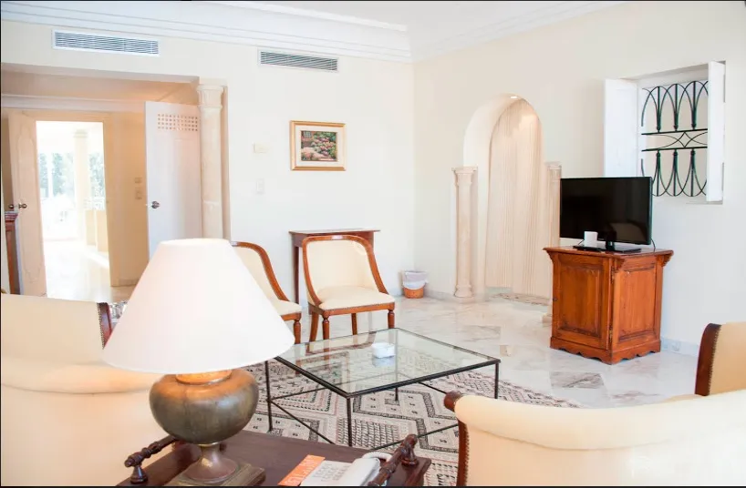 This comfortable beach and spa hotel places its guests at just 400 metres from the seafront and only a minute from the new Medina in the tourist zone of Yasmine Hammamet. The area around it offers a choice of restaurants, bars, nightspots and shops. The venue itself is surrounded by a beautiful garden that shields it from the outside and creates a peaceful and relaxing atmosphere. The neatly decorated bedrooms are true places of harmony and relaxation, they feature all of the comforts required for a good night sleep and balconies that treat the guests to magnificent views of either the vastness of the sea or the charming city. The services which the venue offers make it ideal for both business travellers and holidaymakers alike, there are 3 swimming pools each with a poolside bar, conference facilities and a full service spa offering massages and hammam treatments. Location:100 Total number of rooms; 2 Number of floors (main building); 97 Double rooms; 3 Apartments Hotel type:hotel Methods of payment:MasterCard; Visa Distances (in meters):City centre (12000); Bus/Train station (50); Nearest Bus / Metro Stop (20000); Beach (400); Golf course (8000) Facilities:Wheelchair-accessible; Car park; 24-hour reception; Check-in hour; Check-out hour; Mobile phone coverage; Wi-fi; Room service; Laundry service; Bicycle hire service; Multilingual staff; Air conditioning in public areas; Hotel safe; Currency exchange facilities; Lift access; Supermarket; Shop; Garden; Terrace; Bicycle storage; Gym; Luggage room; Clothes dryer; Grill/BBQ Catering:Bar; 3 Restaurant; Non-smoking area; Smoking area; Highchairs; Poolside snack bar; Air conditioning in Restaurant Business:Conference room; Meeting room Entertainment:1 Indoor freshwater pool; 1 Outdoor freshwater pool; Sun loungers (Extra Fee); Parasols (Extra Fee) Health:Sauna; Massage; Spa treatments; Hairdressing salon