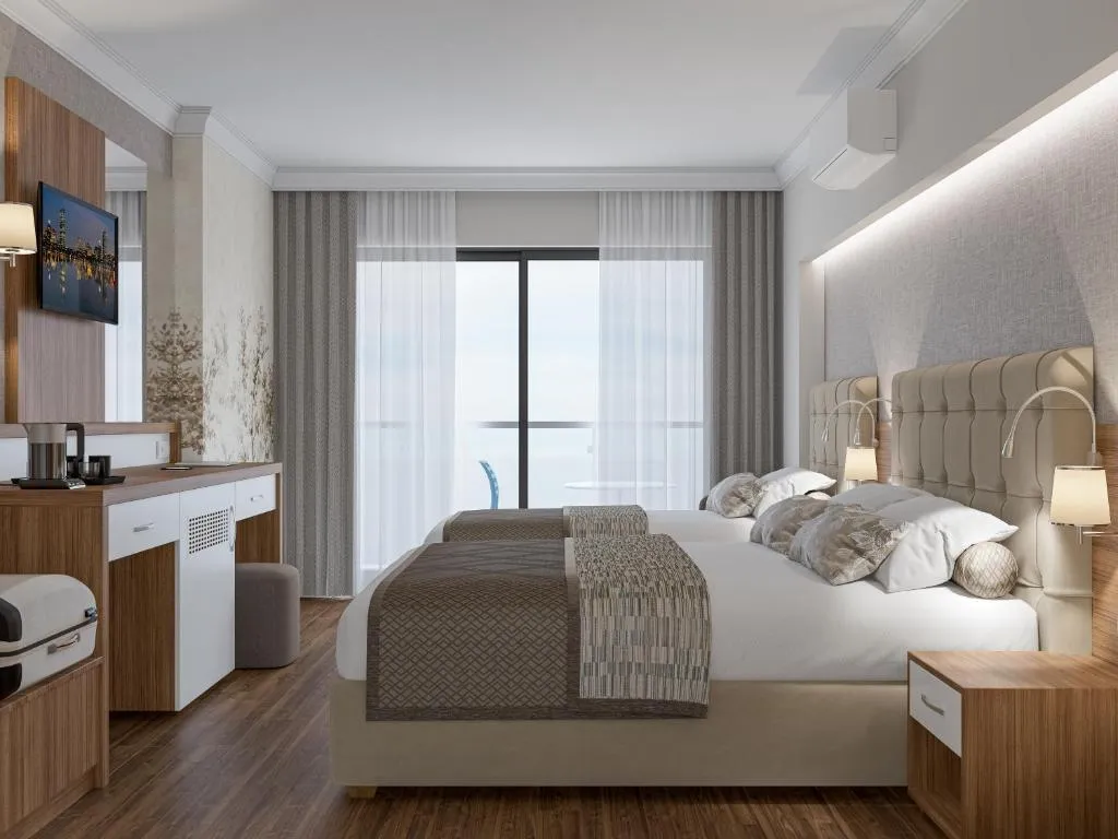Dotări camere: baie proprie cu duș/cadă, aer condiționat, zonă de relaxare, seif (contra cost), telefon în cameră și baie, uscător de păr, minibar, facilități pentru ceai/ cafea, TV, balcon.