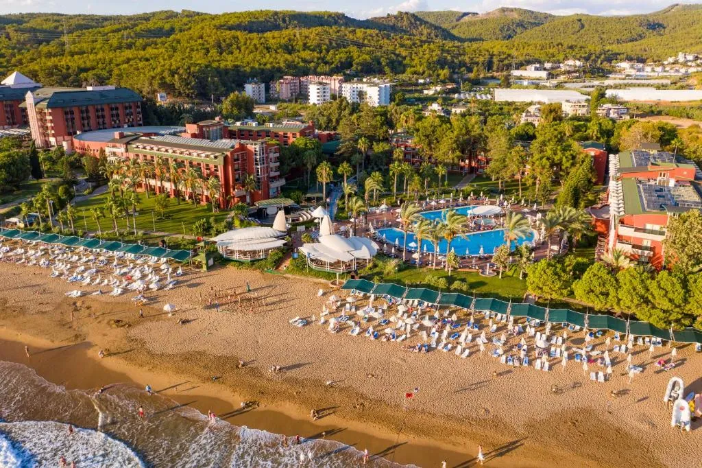 Descriere generala: Piscine pentru adulți și pentru copiiAcces internet Wi-FiCentru Wellness & Spa Principalele puncte de atracție: Piscine pentru adulți și pentru copiiAcces internet Wi-FiCentru Wellness & Spa Descriere hotel: TTH Pegasos Club a fost construit în anul 2018, se întinde pe o suprafață de 31.000 mp, pe malul Mării Mediteraneene, dispune și de un ponton și este înconjurat de un vast spațiu verde cu palmieri și numeroase grădini. Facilități si dotari camere: Hotelul pune la dispoziţia turiştilor un total de 417 camere, împărţite astfel: Camere Standard: - cca 23mp, cu pat dublu sau două paturi twin și balconCamere Standard Large: - cca 25mp, cu pat dublu și balconCamere Familiale: - cca 38mp, cu una sau două dormitoare, separate de ușă normală sau glisantă, cu paturi duble și/sau twin, majoritatea cu balcon/terasă.Camere Grand Suit: - cca 75mp, cu 3 dormitoare, separate de ușă normală, cu pat dublu și pat twin, jacuzzi, cu balcon și terasăDotări camere: baie proprie cu cadă / duş, uscător de păr, TV satelit, telefon, acces internet Wi-Fi, mini-bar, seif (contra cost), aer condiţionat, alarmă de incendiu. Sport și relaxare: Masaj, tratamente de înfrumusețare, baie turcească, saună, coafor, darts, tenis de masă, sală de fitness, volei Facilități pentru copii: Miniclub (pentru copii cu vârsta între 4-12 ani), piscină Facilități gratuite: sală de fitness, tenis de masă, program de animație, mini club, umbrele de soare, prosoape pentru plajă, șezonguri, pătuț pentru copii, scaune înalte pentru copii, în restaurant, internet în lobby Facilități contra cost: mâncare și băutură contra cost după ora 1:00 AM, servicii de spălătorie, masaj și tratamente de înfrumusețare, servicii medicale, seif, hamam, telefon & fax, magazine diverse (haine, genți, poze, tatuaje), sporturi acvatice (canoe, jetski, parasailing etc.)   Regim de masă: All InclusiveMic dejun, prânz şi cină tip bufetConexiune Wi-Fi gratuită în LobbyProgram de animație, show-uri, muzică liveBăuturi locale alcoolice și non-alcoolice Locatia: Hotelul este situat la 95 km de aeroportul din Antalya, la 2 km de centrul orașului Incekum și la 28 km de centrul orașului Alanya. Pentru deplasări, în apropierea hotelului se află stație pentru autobuzul public, disponibil la fiecare 15 minute, dar și posibilitatea de a lua taxi. Soare si mare: Plajă proprie cu nisipDouă piscine exterioare, de 350mp respectiv 283mpO piscină pentru copii de 20mpȘezlonguri, saltele, umbrele și prosoape gratuite atât la plajă, cât și la piscină. Restaurante si baruri: Restaurant principal tip bufetBaruri: Lobby Bar, Beach Bar, Pool Bar, Lobby Lounge, Disco Bar
