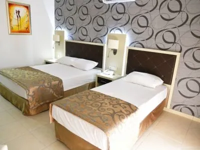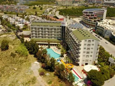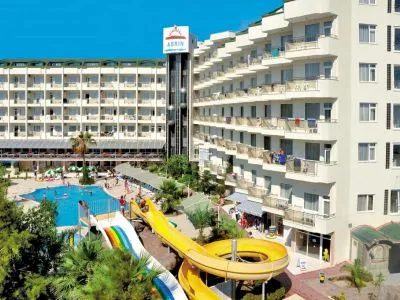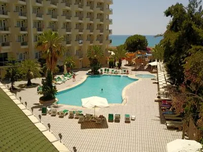 Descriere generala: Acces la plaja cu nisip si pietricele3 piscineRecomandat pentru un sejur de relaxare Principalele puncte de atracție: Acces la plaja cu nisip si pietricele3 piscineRecomandat pentru un sejur de relaxare Descriere hotel: Hotelul a fost construit in anul 1997 si renovat partial in 2018. Este localizat in statiunea Turkler, la 20 km de orasul Alanya si ofera un regim de masa All Inclusive. Se intinde pe o suprafata de 9000 mp si detine 250 camere. Facilități si dotari camere: -  Standard Rooms (189 Triple si 61 Double)- camerele au o suprafata de 24-27 mp, capacitatea maxima de cazare este de 2 adulti si un copil si sunt mobilate cu un pat dublu si un pat single.Dotări camere: baie proprie cu dus, TV, telefon, minibar, seif (contra cost), aer conditionat individual, conexiune internet (contra cost), uscator de par. Sport și relaxare: piscine exterioare, tobogane, acces la plaja, baie turceasca, sauna, aerobic, tenis de masa, volei pe plaja, boccia, animatie usoara, mini club, seara turceasca (o data pe saptamana), sporturi nautice. Facilități pentru copii: - loc de joaca in aer liber- mini club pentru copiii cu varsta intre 4-12 ani- piscina pentru copii, tobogane Facilități gratuite: bauturi alcoolice si non-alcoolice locale incluse in intervalul 10:00-23:00, aerobic, tenis de masa, volei pe plaja, boccia, animatie usoara, mini club, seara turceasca (o data pe saptamana), piscine exterioare, tobogane, acces la plaja. Facilități contra cost: bauturi de import si imbuteliate, sucuri naturale de fructe, cafea turceasca, seif in camera, conexiune internet, sauna, baie turceasca, serviciul de masaj, servicii medicale, spalatorie/calcatorie, sporturi nautice. Regim de masă: All Inclusive- mic dejun, pranz si cina tip bufet- bauturi alcoolice si non-alcoolice locale incluse in intervalul 10:00-23:00 Bine de stiut: Hotelul are doua camere adaptate nevoilor persoanelor cu dizabilitati. Locatia: Hotelul este localizat la 110 de km de aeroportul Antalya, 61 fata de aeroportul Gazipasa si 20 km fata de orasul Alanya. Soare si mare: Hotelul ofera acces la plaja printr-un pasaj subteran. Acesta detine 3 piscine: o piscina principala, o piscina pentru copii si o piscina cu tobogane. Umbrelutele si sezlongurile atat la piscina cat si pe plaja sunt gratuite. Restaurante si baruri: Restaurant principal, restaurant a la carte (contra cost), 3 baruri (Lobby Bar, Pool bar, Beach Bar).