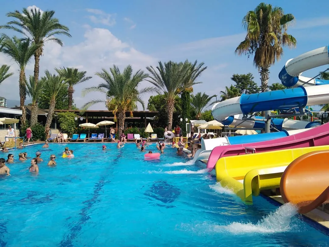 Hotelul are o plaja privata cu nisip si pietricele, o piscina exterioara pentru adulti de 570 mp, o piscina pentru copii de 100 mp, Aquapark cu 4 tobogane pentru adulti si unul pentru copii. Umbrelutele, sezlongurile si prosoapele sunt gratuite.