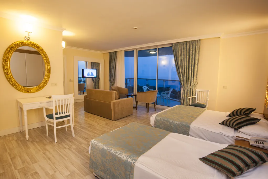 Fara plata: mic dejun, pranz si cina, gustari intre 11:00-16:00, gozleme intre 11:00-16:00, burgeri intre 11:00-16:00, patiserie intre 11:00-17:00, inghetata in sezonul de vara intre 14:17:00. Servicii: serviciu bagaje, serviciu de apel telefonic trezire, plaja privata, sezlonguri pe plaja, saltea si umbrela pe plaja, schimb valutar, animatie, baie turceasca si sauna. Sporturi: mini fotbal, basketball, volleyball, volei pe plaja, tenis, tenis de masa, darts, fitness, wifi in lobby