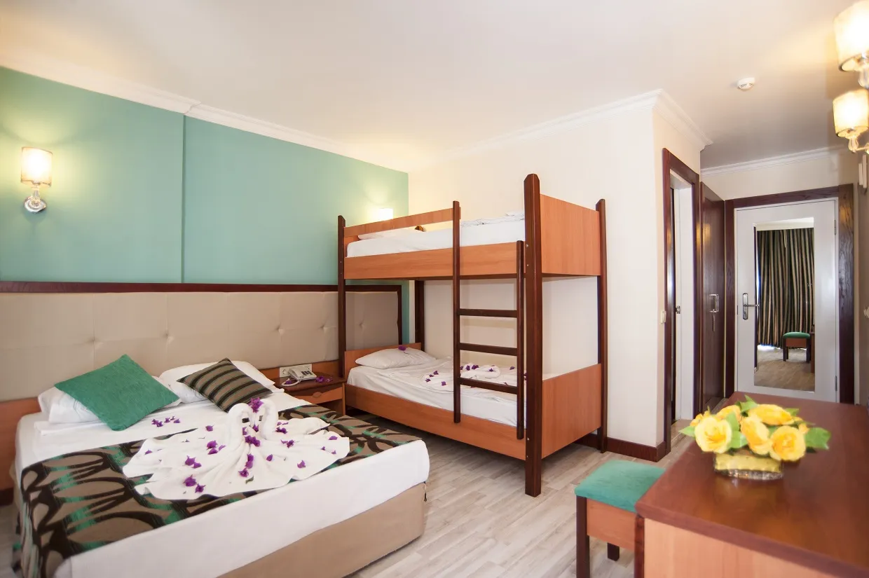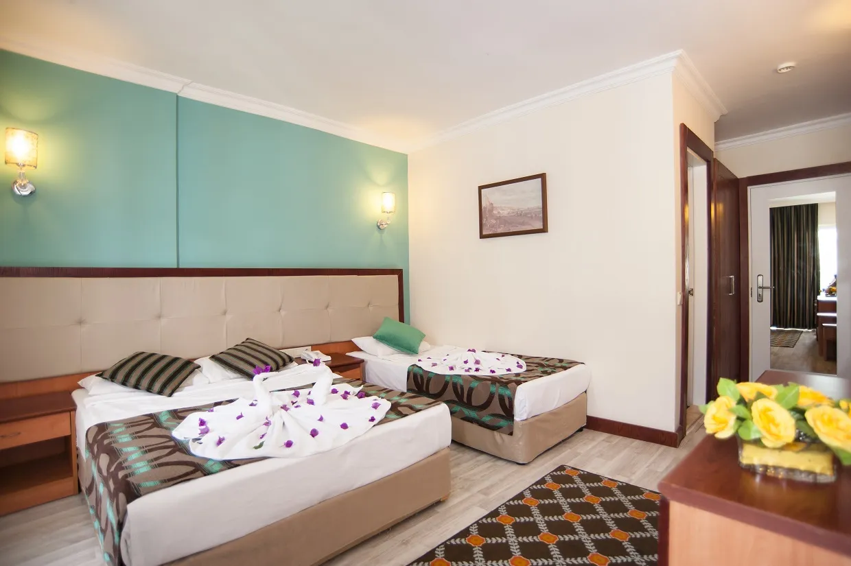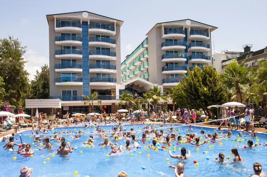 Concordia Celes Hotel is located in Antalya, Alanya region. Concordia Celes Hotel attracts attention with its seafront location. Babysitting is available so that your children can be safely accommodated during your holiday. The property's private beach consists of sand and pebbles. The hotel has its own pier. You will have the opportunity to cool off by having fun in the outdoor swimming pool. You can spend pleasant moments doing water sports with banana, pedalo, jetski, canoe, catamaran, surfing and water sports in the facility. There are special areas where billiards can be played. The facility provides service in the concept of all inclusive. You can have your meals in the a la carte restaurant, outdoor restaurant and indoor restaurant in the facility. Your room temperature can be adjusted with the central air conditioner/split air conditioner in your room. TV, wireless internet, telephone and room safe are available in standard rooms that you can use during your stay. Room service is available. You can relax and feel refreshed by taking advantage of the spa and massage services within the facility. There are parachuting and surfing opportunities for action-loving holidaymakers. The hotel is 91 km from Antalya Airport, 77 km from Gazipasa, 35 km from Alanya and 30 km from Side. You can benefit from the doctor, photographer, beauty salon, hairdresser, market, car rental services in the facility.