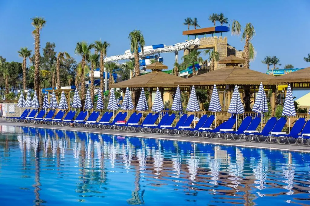 Plajă proprie – accesul se face prin intermediul unui pasaj subteran; Piscină principală – 1.000 mp, piscină pentru copii – 80 mp, Aqua Park cu 12 tobogane – 1.195 mp, piscină interioară – 75 mp, piscină interioară pentru copii – 16 mp, piscină Swip Up – 810 mp; Umbrele, șezlonguri, saltele și prosoape gratuite atât la plajă, cât și la piscină.