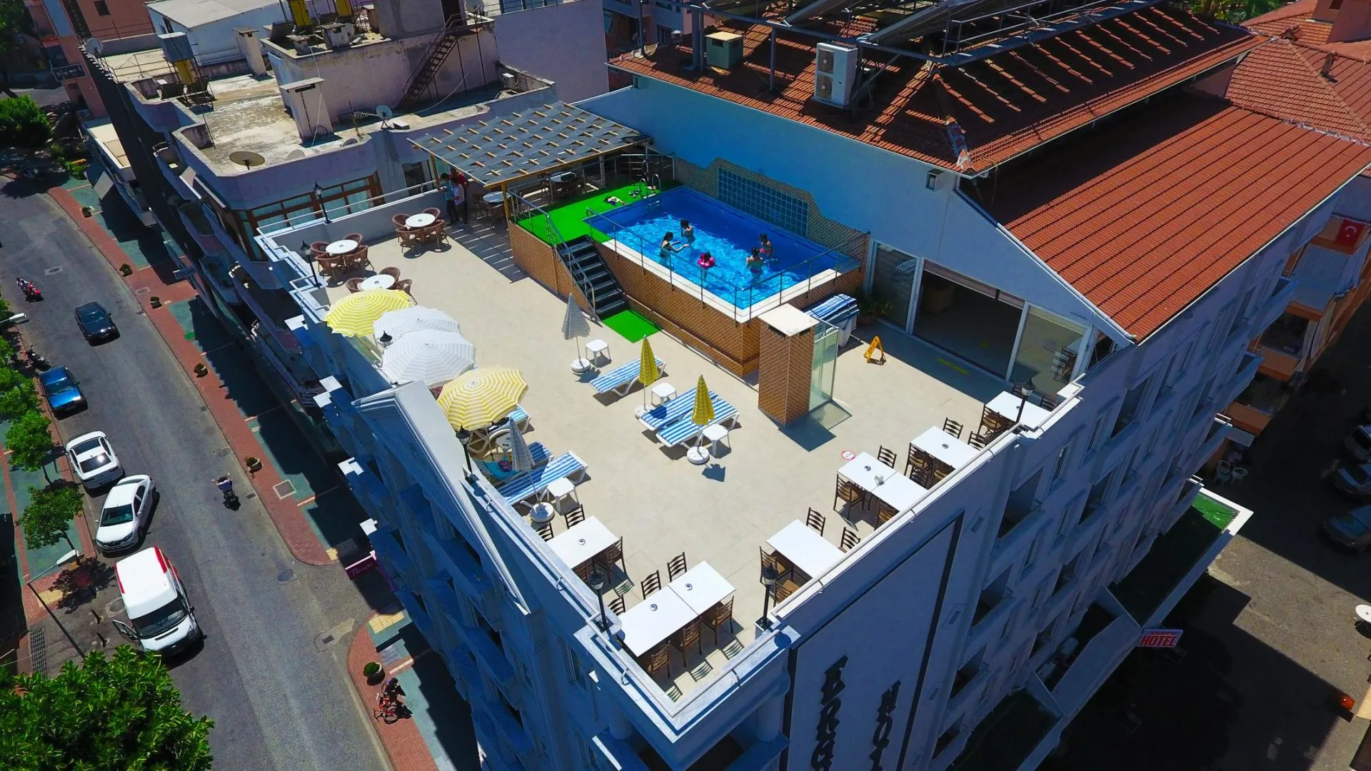 Descriere generală Hotelul Ergun Hotel Alanya este locat in Alanya, la cca. 600 m de o plajă cu nisip. Centrul turistic al orașului se află la aprox. 500 m. Orașul Antalya este la aprox. 140 km. Veți găsi un supermarket la cca. 500 m. De asemenea, cele mai apropiate baruri și restaurante sunt la cca. 500 m. O discotecă aflată la aprox. 500 m vă invită la dans. Aveți la dispoziție o stație de taxi (cca. 50 m) cea ce vă oferă mobilitate în timpul vacanței. Pentru îngrijiri medicale în caz de urgență, există un spital la cca. 2 km distanță. Aeroportul (AYT) se află la aprox. 125 km. Un serviciu de transfer (contra cost) face legătura între hotel și aeroport. Un alt aeroport (GZP) este la cca. 43 km. Până la cea mai apropiată plajă există, de asemenea, un serviciu de transfer (graduit). Facilități Încântătorul hotel dispune de peste 62 camere. Acesta oferă oaspeților săi recepție deschisă 24h (check-in de la 14:00, check out până la 12:00), lobby, aer condiționat, minimarket, parcare (gratuită) și birou de schimb valutar. Accesul la internet WiFi este disponibil gratuit pentru oaspeții hotelului. Serviciul de menaj este gratuit. Room service, spălătorie, călcat și serviciul medical sunt disponibile la un cost suplimentar. Piscină Zona exterioară a hotelului include o piscină cu apă dulce. Acolo sunt disponibile gratuit șezlonguri și umbrele de soare. Catering Mic dejun (între orele 08:00 - 10:00) bufet suedez. All Inclusive: micul dejun, prânzul și cina. Micul dejun, prânzul și cina pot fi servite numai în anumite restaurante. Apă. Băuturi răcoritoare (10:00 - 22:00), cafea și ceai (10:00 - 22:00), bere (10:00 - 22:00), vin (10:00 - 22:00) și băuturi alcoolice naționale (10:00 - 22:00). Informații suplimentare Pentru anumite facilități sau activități se pot aplica taxe suplimentare. Unele servicii depind de anotimp și de condițiile climatice locale. Limbi de serviciu: engleză și turcă. Carduri de credit: Visa și Euro/MasterCard. Etagenbett Standard Familienzimmer: Cameră cu pat pentru bebeluși (gratuit), încălzire (reglabilă individual, contra cost), minibar (contra cost), acces la internet (contra cost), seif (contra cost) și TV cu ecran plat prin satelit precum și aer condiționat reglabil individual (contra cost). Baie cu duș. Doppel Standard Zimmer: Cameră cu pat pentru bebeluși (gratuit), încălzire (reglabilă individual, contra cost), minibar (contra cost), acces la internet (contra cost), seif (contra cost) și TV cu ecran plat prin satelit precum și aer condiționat reglabil individual (contra cost). Baie cu duș. Dimensiune: 25 m². Einzel Standard Zimmer: Cameră cu pat pentru bebeluși (gratuit), încălzire (reglabilă individual, contra cost), minibar (contra cost), acces la internet (contra cost), seif (contra cost) și TV cu ecran plat prin satelit precum și aer condiționat reglabil individual (contra cost). Baie cu duș.