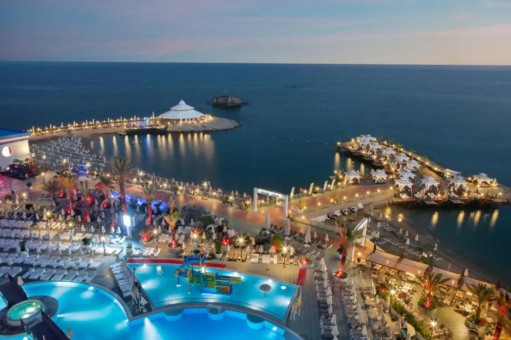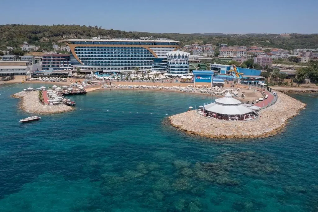 Hotelul a fost inaugurat în anul 2010 și se întinde pe o suprafață de 24.000 mp. Hotel amplasat convenabil pe plaja, în stațiunea Alanya, oferă o priveliște spectaculoasă spre mare. Camere cu aer condiționat și minibar, acces la internet, recepție non-stop, piscine, restaurante și personal foarte amabil. Toate acestea promit să ofere un sejur de vis tuturor oaspeților.