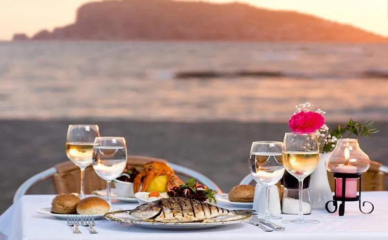 Restaurant principal tip bufet, Snack Restaurant pe plajă; Restaurant a la carte cu specific: „La Costa” pescăresc, „Pruva” italian; Baruri: Lobby Bar, „Moon” Bar, „Vitamin” Bar, Pool Bar, Beach Bar.