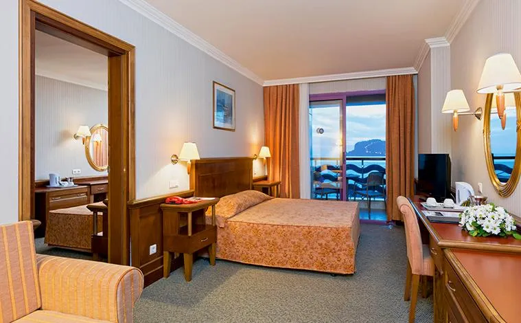 Dotări camere: baie cu cadă / duș, seif (contra cost), mini-bar, TV, acces internet Wi-Fi (contra cost), facilități ceai / cafea, balcon.