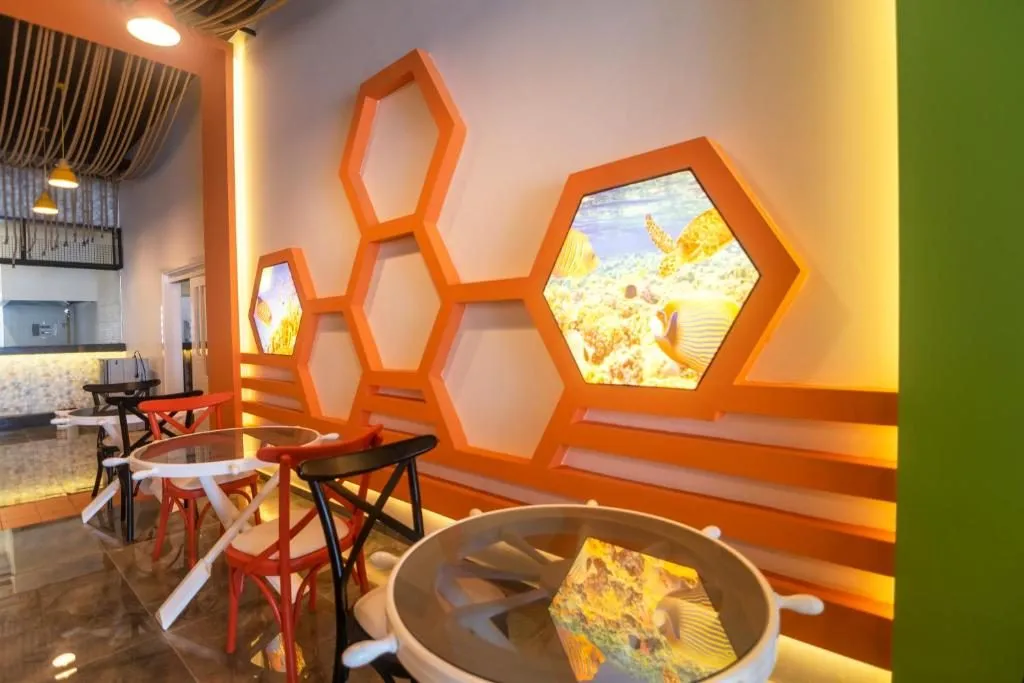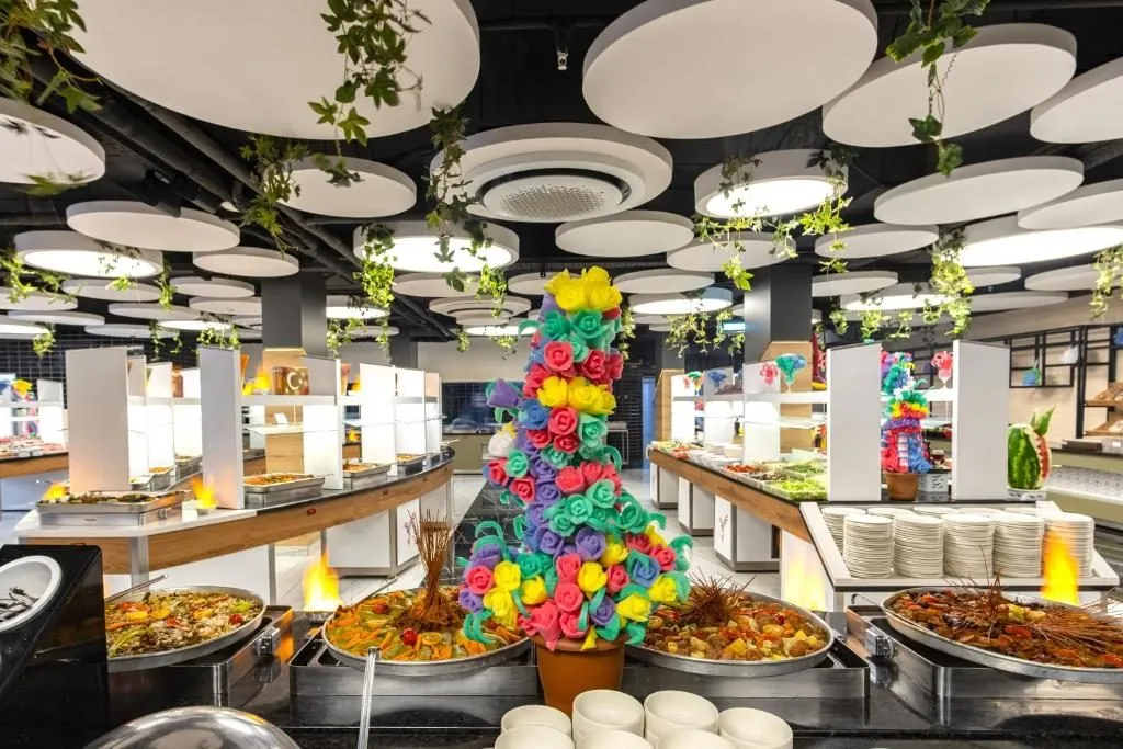 Restaurant principal; 2 restaurante a la carte cu specific otoman si pescaresc (o cina gratuita pe baza de rezervare), 2 snack baruri, Pool Bar, Lobby Bar, Lobby Terrace Bar, Aqua Pool Bar, Beach Bar, Night Club.