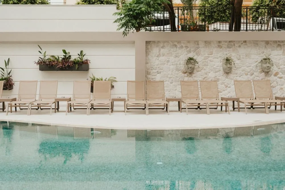 Terasă și șezlonguri disponibile pentru relaxare la soare (în general contra cost pentru plajă).