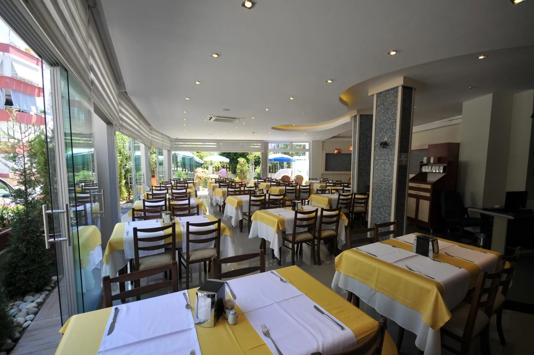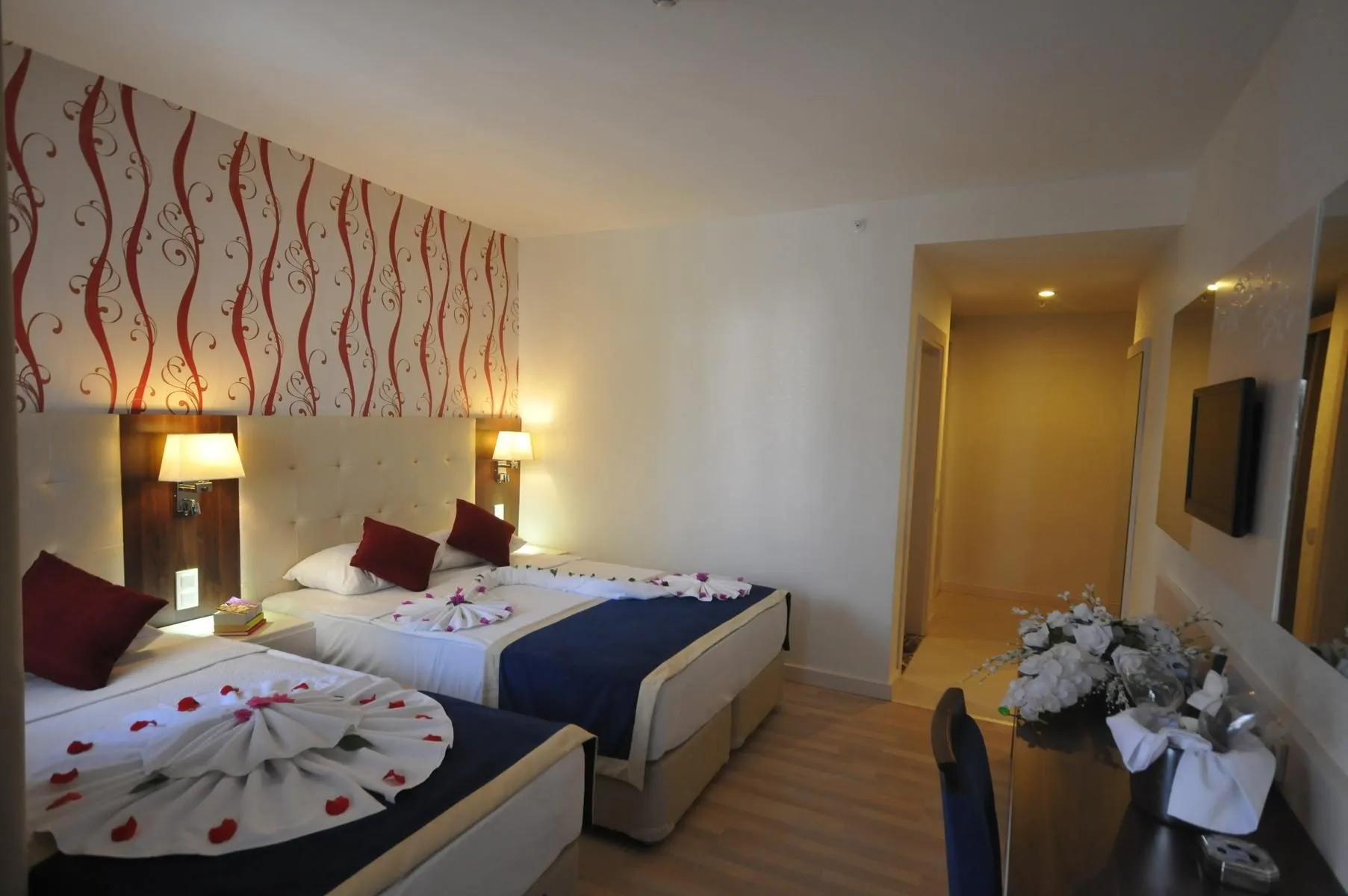 Descriere generală Hotelul Kleopatra Micador Otel este locat la cca. 200 m de o plajă privată cu nisip/pietriș. Pe plajă sunt disponibile gratuit șezlonguri și umbrele de soare. Orașul Antalya este la aprox. 130 km. Următoarele atracții pot fi accesate de la hotel: Alanya Castle (cca. 1 km), Red Tower (cca. 800 m) și Damlatas Cave (cca. 350 m). Pentru îngrijiri medicale în caz de urgență, există un spital la cca. 500 m distanță. Aeroportul (AYT) se află la aprox. 124 km. Un alt aeroport (GZP) este la cca. 43 km. Facilități Încântătorul hotel dispune de peste 85 camere. Acesta oferă oaspeților săi recepție deschisă 24h (check-in de la 14:00, check out până la 12:00), lobby cu bar, 2 lifturi și aer condiționat. Accesul la internet WiFi poate fi utilizat de oaspeții hotelului contra cost. Pentru evenimente de afaceri, hotelul oferă o zonă de conferințe. Serviciul de menaj este gratuit. Spălătorie, călcat și serviciul medical sunt disponibile la un cost suplimentar. Piscină În grădinile acestui hotelul există o piscină cu apă dulce precum și o piscină pentru copii. Acolo sunt disponibile gratuit șezlonguri și umbrele de soare. Catering Mic dejun (între orele 08:00 - 10:00) bufet suedez. All Inclusive: Băuturi răcoritoare (10:00 - 23:00), cafea și ceai (10:00 - 23:00), prăjituri și produse de patiserie (16:00 - 17:00), bere (10:00 - 23:00), vin (10:00 - 23:00) și băuturi alcoolice naționale (10:00 - 23:00). Sport/Leisure Este disponibil: Darts (posibil contra cost), tenis de masă (posibil contra cost) și volei pe plajă. Oferte de wellness: Saună, hamam și masaje contra cost. Informații suplimentare Pentru anumite facilități sau activități se pot aplica taxe suplimentare. Unele servicii depind de anotimp și de condițiile climatice locale. Limbi de serviciu: engleză, germană și turcă. Carduri de credit: Visa și Euro/MasterCard. Unele servicii sau oferte pot fi utilizate doar într-o măsură limitată sau pot fi complet închise din cauza noilor protocoale de sănătate COVID19. Se pot aplica modificări fără informare prealabilă. Double Standard Zimmer: Cameră cu parchet laminat, minibar (posibil contra cost), acces la internet (contra cost), seif (contra cost) și TV cu ecran plat prin satelit precum și aer condiționat reglabil individual. Einzelbelegung Standard Zimmer: Dotate cu parchet laminat, minibar (posibil contra cost), acces la internet (contra cost), seif (contra cost) și TV cu ecran plat prin satelit precum și aer condiționat reglabil individual.