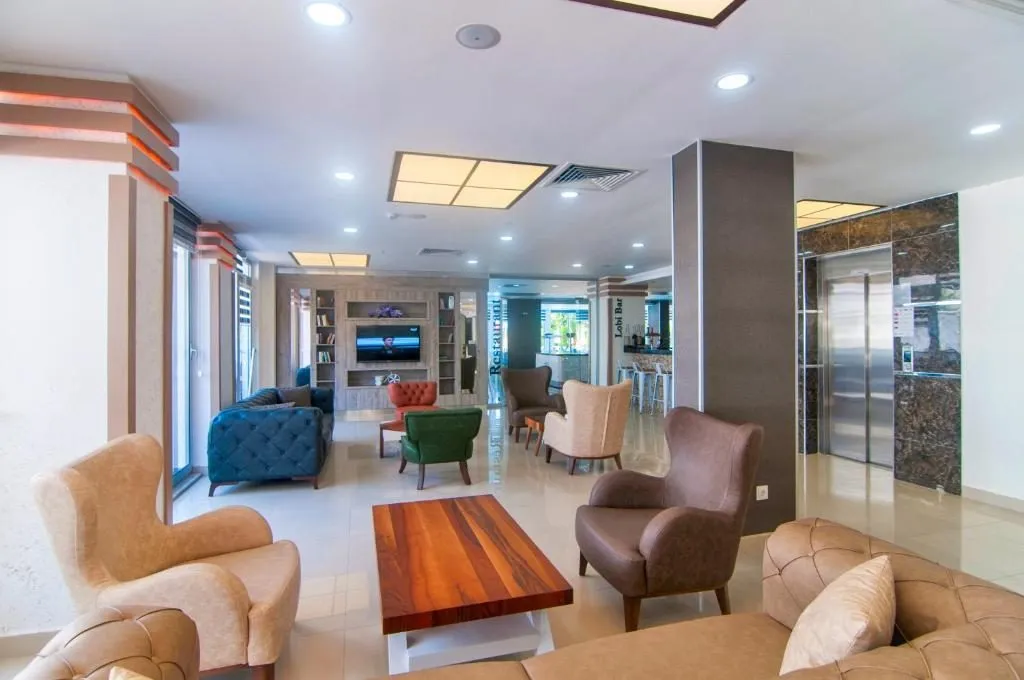 Descriere generala: Piscina in aer liber cu toboganRecomandat pentru un sejur activ Principalele puncte de atracție: Piscina in aer liber cu toboganRecomandat pentru un sejur activ Descriere hotel: Hotelul a fost construit in anul 1989 si este localizat in statiunea Avsallar/Alanya, la 150 m de plaja proprie. Facilități si dotari camere: -  Standard Rooms- pot fi single si double si sunt mobilate cu unul, respectiv 2 paturi twin. Acestea au 18 mp.- Family Rooms- o singura incapere mare cu o capacitate de 4 persoane.Dotari camere: baie proprie cu dus, TV, telefon (contra cost), minibar, seif (contra cost), aer condiționat, internet (contra cost), uscator de par, balcon. Sport și relaxare: piscine in aer liber, tobogan, centru spa, baie turceasca, sauna, darts, loc de joaca pentru copii, biliard, sporturi nautice Facilități pentru copii: - piscina pentru copii si tobogan- loc de joaca pentru copii Facilități gratuite: bauturi alcoolice si non-alcoolice locale, conexiune internet in lobby, piscine in aer liber, tobogan, baie turceasca, sauna Facilități contra cost: bauturi de import, sucuri proaspete de fructe, cafea turceasca, conexiune internet in camera, seif in camera, serviciul de masaje la centrul spa, sporturi nautice, servicii medicale, shopping, spalatorie/calcatorie, telefon, fax. Regim de masă: All Inclusive - mic dejun, pranz si cina tip bufet- bauturi alcoolice si non-alcoolice locale incluse in intervalul 10:00-23:00 Locatia: Hotelul este localizat la 108 km de aeroportul Antalya, 60 km fata de cel din Gazipasa si 22 km fata de centrul Alanyei. Soare si mare: Hotelul este situat la 150 m de plaja proprie si are o piscina in aer liber cu zona pentru copii si un tobogan. Umbrelutele si sezlongurile sunt gratuite. Restaurante si baruri: Restaurant principal; Pool Bar.
