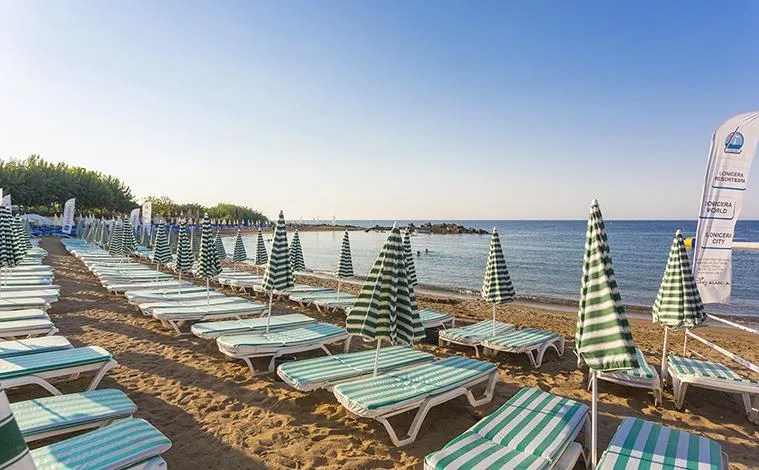 Plajă privată cu nisip, 4 piscine exterioare, 2 piscine interioare, 4 piscine pentru copii, 6 jacuzzi, Aqua Park cu 9 tobogane acvatice pentru adulți și 10 pentru copii (cca. 1500 mp); Umbrele, șezlonguri și prosoape gratuite pentru plajă.