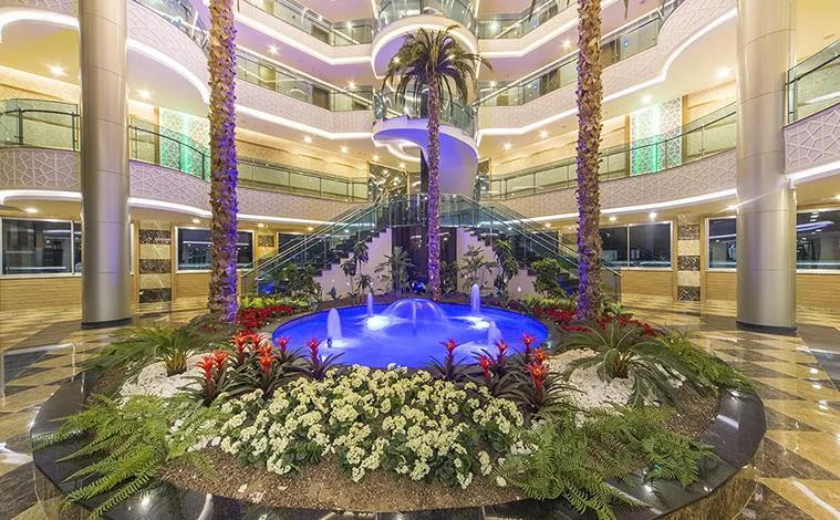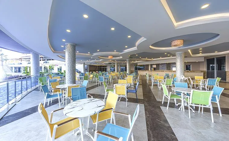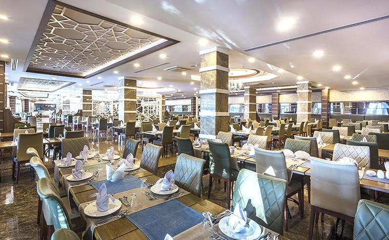 Restaurantul principal – tip bufet (meniu dietetic disponibil, la cerere), restaurante A La Carte cu specific pescăresc și arăbesc; Lobby Bar, Patisserie Bar, Waterfall Bar, Snack Bar, Olympic Bar, Aquapark Bar, Panorama Bar, Palm Café, Zoo Bar, Pub Bar, Disco Bar.