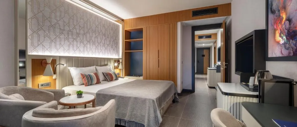 Dotări camere: baie proprie cu duş, uscător de păr, aer condiționat, TV, telefon, acces internet Wi-Fi, mini-bar - alimentat zilnic, facilităşi ceai/cafea, seif, balcon.