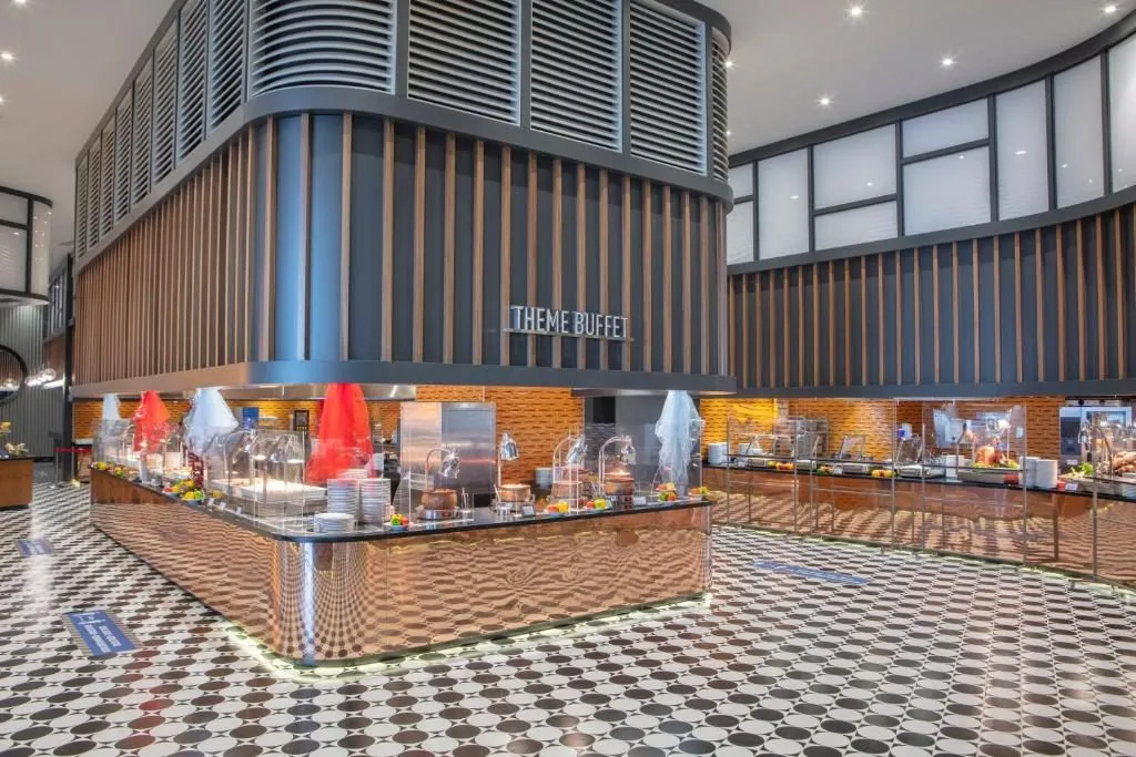 Restaurant principal, 4 restaurante á la carte, cu specific: turcesc-„Zeugma”, oriental-„Dragon”, italian-„La Gustosa”, pescăresc-„Octopus”, restaurant cu specific japonez-„Sakura”, 2 snack restaurants-Food Court şi Fast Corner, patiserie-„Emerald”, Bistro Restaurant; „Infinity”-Lobby Bar, Lobby Terrace Bar, Bar 24, „Panorama” Pool Bar, „Wet Pool” Activity Bar, „Ocean” Pier Bar, „Phenix” Night Club Bar.