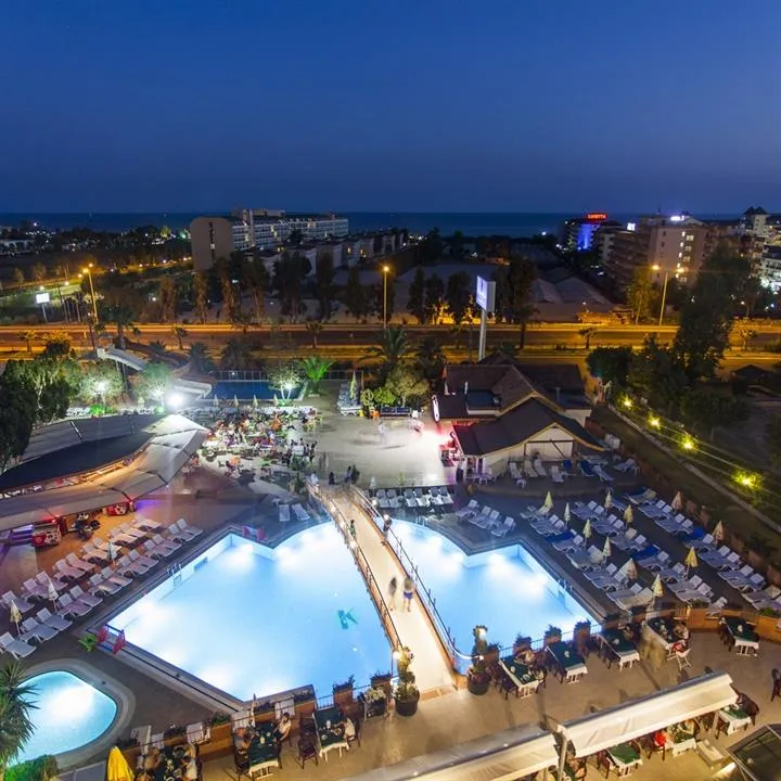 Descriere generala: Acces internet Wi-FiCentru Wellness & Spa Principalele puncte de atracție: Acces internet Wi-FiCentru Wellness & Spa Descriere hotel: Hotelul a fost deschis în anul 1998 şi se întinde pe o suprafaţă de 9000 mp, în a doua linie de la mare. Ultima renovare a avut loc în anul 2019. Facilități si dotari camere: Hotelul dispune de un total de 225 camere, împărţite astfel: 200 camere standard (cca. 26 mp) şi 23 camere family (cca. 35 mp).Dotări camere: baie proprie cu cadă/duş, uscător de păr, TV satelit, telefon, acces internet Wi-Fi, aer condiţionat, mini-bar, seif (contra cost), balcon/terasă. Sport și relaxare: Sală de fitness, aerobic, step, tenis de masă, boccia, volei pe plajă, banana, jet ski, sporturi nautice. Facilități pentru copii: Kid’s Club (pentru copiii cu vârsta cuprinsă între 4-12 ani), spaţiu de joacă, animaţii pentru copii. Facilități gratuite: Baie turcească, sală de fitness, aerobic, step, tenis de masă, boccia, volei pe plajă, program de animaţii, show-uri, muzică live. Facilități contra cost: Centru Wellness & Spa, saună, masaj, coafor, sală pentru întâlniri şi conferinţe, magazine, banana, jet ski, sporturi nautice (pe plajă). Regim de masă: All Inclusive:-Mic dejun, prânz şi cină tip bufet-Băuturi alcoolice şi non-alcoolice locale în intervalul orar 10:00-00:00-Acces internet Wi-Fi, baie turcească, sală de fitness, aerobic, step, tenis de masă, boccia, volei pe plajă, program de animaţii, show-uri, muzică live Locatia: Hotelul este amplasat la o distanţă de 500 m de plajă, la 800 m de centrul Konakli, 12 km de centrul oraşului Alanya şi la 110 km de aeroportul din Antalya. Soare si mare: Plajă proprie, cu nisip şi pietriş, la o distanţă de 500 m de hotel; accesul se face printr-un tunel subteran; shuttle-bus până la plajă; piscină cu tobogane,  relax pool,  piscină principală, piscină pentru copii, piscină interioară, beach pool. Umbrele şi şezlonguri gratuite, atât la plajă cât şi la piscină; pentru prosoape se plăteşte garanţie. Restaurante si baruri: Restaurant principal-tip bufet, Snack-Bar pe plajă, Lobby Bar, Pool Bar, Beach Bar, Relax Bar, Lounge Bar