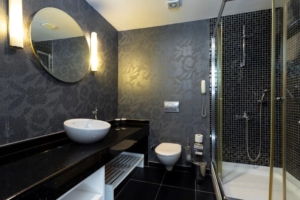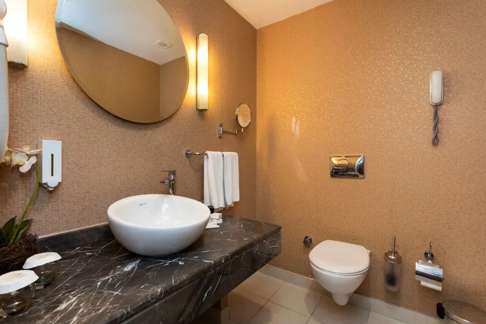 Dotări camere: baie proprie cu cadă/duş, uscător de păr, TV satelit, telefon, acces internet Wi-Fi, aer condiţionat, mini-bar, seif, balcon/terasă.
