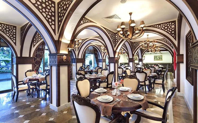 Restaurant principal, tip bufet; 2 restaurante á la carte, cu specific italian şi otoman; Lobby Bar, Disco Bar, Aqua Bar, Diamond Bar, Ottoman Bar, Restaurant Bar.