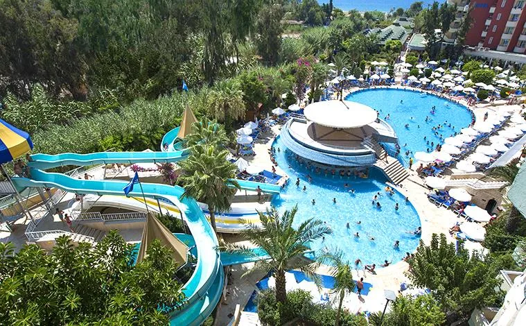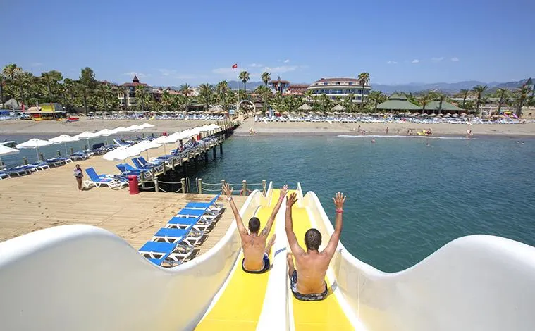 Plajă proprie, cu nisip; ponton; 2 piscine exterioare-375 mp şi 800 mp, piscină interioară-70 mp, piscină exterioară pentru copii-10 mp, aqua park cu 5 tobogane acvatice. Umbrele, şezlonguri şi prosoape gratuite, atât la plajă cât şi la piscină.
