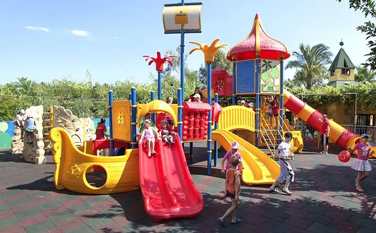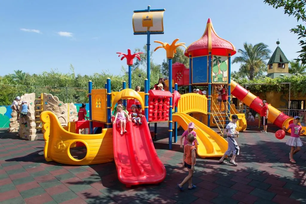 Mini Club (pentru copiii cu vârsta cuprinsă între 4-10 ani; deschis în intervalul orar 10:00-12:00 şi 14:30-17:00), spaţiu de joacă, cinema în aer liber (deschis în intervalul orar 10:00-12:00 şi 14:30-17:00), scaune în restaurant, piscină cu tobogane acvatice, pătuţ (la cerere), baby-sitter (contra cost).