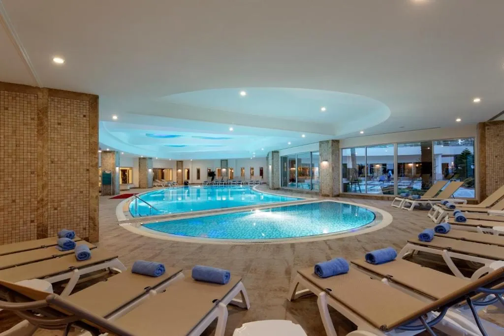 Plajă proprie cu nisip; Piscină principală – 1.500 mp, piscină exterioară – 150 mp, piscină pentru copii – 60 mp, piscină cu trei tobogane; Saltele, șezlonguri și umbrele gratuite atât la plajă, cât și la piscină. Prosoape – contra cost.