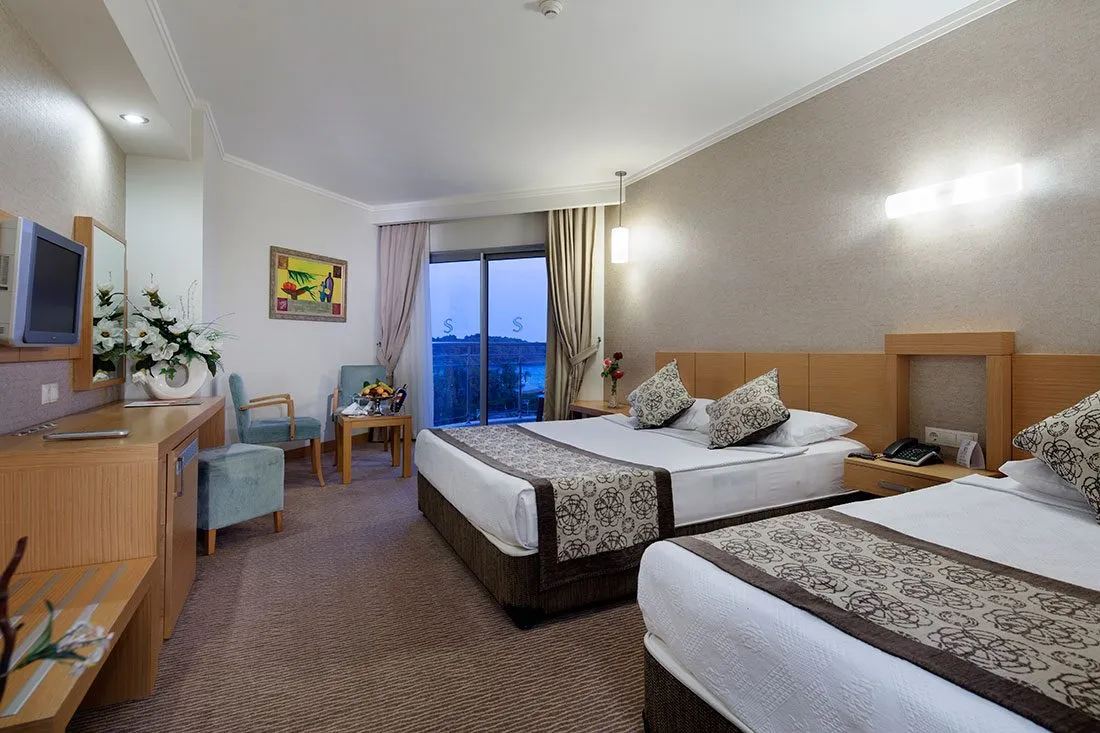 Descriere generala:Cuibărită la 500 metri de centrul orașului, proprietatea asigură un acces ușor înspre tot ce are de oferit această destinație. Unitatea de cazare se află la 15 metri de cea mai apropiată plajă. Saphir Resort & Spa Hotel dispune de un total de 333 camere de oaspeţi. Proprietatea a fost construită în anul 2008. Saphir Resort & Spa Hotel oferă conexiune Wi-Fi la internet în spaţiile comune. Recepţia oferă servicii 24 de ore. Paturile suplimentare nu sunt disponibile în această proprietate. Acestei unităţi de cazare i-a fost acordată certificarea . Saphir Resort & Spa Hotel se mândreşte cu faptul că oferă o gamă variată de facilităţi de luat masa, unde oaspeţii pot savura specialităţi culinare delicioase. Dacă simt nevoia să fie răsfăţaţi, vizitatorii pot profita de facilităţile de întreţinere care le sunt puse la dispoziţie. O gamă largă de opţiuni de divertisment de primă clasă sunt puse la dispoziţia oaspeţilor pentru confortul acestora. În reşedinţă sunt disponibile sporturi şi activităţi de petrecere a timpului liber. Saphir Resort & Spa Hotel poate percepe o taxă pentru unele dintre aceste servicii. Locatia:333 Numărul total al camerelor; 6 Numărul etajelor (clădirea principală); 307 Camere duble; 9 Suite; 3 Camere adaptate pentru persoane cu disabilități Tip hotel:hotel Metode de plata:American Express; MasterCard; Visa Distanta (in metri):Centrul orașului (500); Cea mai apropiată stație de autobuz/metrou (33000); Plajă (15) Facilitati camera (standard):Baie adaptată nevoilor persoanelor cu disabilități; Wi-Fi; Acces internet; Accesibil scaunelor cu rotile; Camere de fumători; Pătuțuri pentru copii la cerere Facilitati:Accesibil scaunelor cu rotile; Parcare; Recepție deschisă 24 de ore; Ora sosirii (check-in); Ora plecării (check-out); Internet prin cablu (Extra Fee); Wi-Fi; Serviciu în cameră (Extra Fee); Serviciu de spălătorie (Extra Fee); Servicii medicale (Extra Fee); Serviciu de închiriere biciclete (Extra Fee); Aer condiționat în locurile publice; Seif în hotel; Facilități de schimb valutar; Lift; Supermarket; Magazin; Grădină; Terasă; Terasă la soare; Sală de sport; Sală de bagaje; Zonă privată de plajă; Bibliotecă Catering:Cafenea; Bar; 3 Restaurant; Zonă de nefumători; Zonă de fumat; Scaune pentru copii; Snack bar lângă piscină; Sală de banchete; Aer condiționat în restaurant Afaceri:Sală de conferințe; Sală de ședințe Divertisment:1 Piscină interioară cu apă dulce; 1 Piscină în aer liber cu apă dulce; 1 Zonă de înot pentru copii; Șezlonguri; Parasolare; Zonă de joacă pentru copii; Club de copii; Program de divertisment pentru adulți; Program de divertisment pentru copii; Sală cu TV; Teatru/auditorium; Sală de jocuri; Club de noapte Sanatate:Saună; Baie de aburi; Baie turcească (hamam); Masaj (Extra Fee); Tratamente spa (Extra Fee); Salon de coafură Tipuri de mancare:Mic dejun; Mic dejun bufet; Prânz bufet; Cină bufet; Cină a la carte; Opțiuni dietetice speciale Sporturi:Gimnastică acvatică; Banana boat ride (Extra Fee); Waterskiing (Extra Fee); Jet ski (Extra Fee); Scufundări (Extra Fee); Windsurfing (Extra Fee); Navigare (Extra Fee); Canoe (Extra Fee); Hidrobiciclete (Extra Fee); Tenis de masă; Aerobic; Fitness; Baschet; Volei de plajă; Biliard (Extra Fee); Surfing (Extra Fee); Tenis; Darts Healthy & Safety (COVID):Turkey - Safe Tourism Certificate