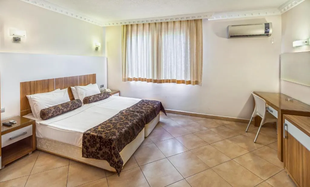 Descriere generala: 2 piscine, tobogan pentru copiiRecomandat pentru un sejur activ Principalele puncte de atracție: 2 piscine, tobogan pentru copiiRecomandat pentru un sejur activ Descriere hotel: Hotelul a fost deschis in anul 1995, renovat partial in 2018 si este localizat in Tosmur, la 4 km de centrul orasului Alanya. Acesta are un total de 222 camere, situate in 3 cladiri, se intinde pe o suprafata de 6000 mp si ofera un regim de masa All Inclusive. Facilități si dotari camere: Hotelul dispune de urmatoarele tipuri de camere:- Standard Rooms– camerele au o suprafata de 17-20 mp iar capacitatea de cazare este de maximum 3 persoane.Dotări camere: baie proprie cu dus, TV, telefon (contra cost), minibar (gol), seif (contra cost), aer conditionat, uscator de par. Sport și relaxare: piscine in aer liber, tobogan, acces la plaja, baie turceasca, sauna. Facilități pentru copii: - piscina pentru copii cu tobogan Facilități gratuite: bauturi alcoolice si non alcoolice locale incluse in intervalul 10:00-22:00, piscine in aer liber, tobogan, acces la plaja, sezlonguri si umbrelute gratuite. Facilități contra cost: conexiune internet, seif, baie turceasca, sauna, masaje, spalatorie, servicii medicale. Regim de masă: All inclusive - mic dejun, pranz si cina tip bufet- bauturi alcoolice si non-alcoolice locale incluse in intervalul 10:00-22:00- mici gustari intre mesele principale Bine de stiut: Hotelul este situat peste drum de plaja, insa exista un pasaj subteran pentru a facilita accesul catre aceasta. Locatia: Hotelul este localizat la 130 km fata de aeroportul Antalya, 35 km fata de aeroportul Gazipasa si 4 km fata de centrul Alanyei. Soare si mare: Plaja hotelului este cu nisip si pietricele, are o lungime de 150 m si este accesibila printr-un pasaj subteran. Hotelul detine si o piscina in aer liber pentru adulti cu o suprafata de 500 mp si o piscina pentru copii cu suprafata de 30 mp, care are un tobogan. Umbrelutele si sezlongurile sunt gratuite atat la piscina cat si la plaja. Restaurante si baruri: Restaurant principal, S Bar, Pool Bar, Beach Bar.