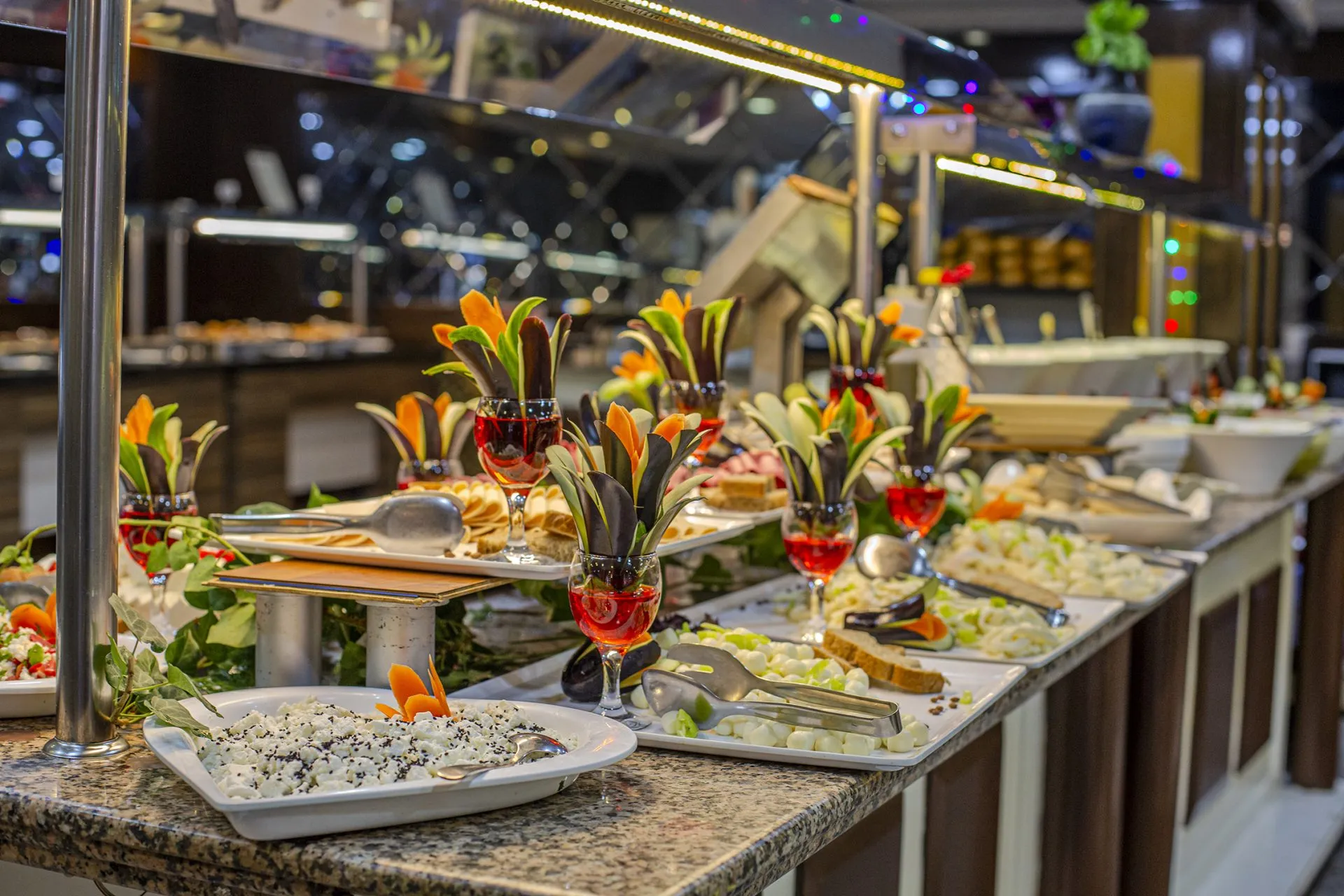 Mic dejun (între orele 08 00 - 10 00) bufet suedez. Apă, băuturi răcoritoare (10 00 - 23 00), cafea și ceai (10 00 - 23 00), prăjituri și produse de patiserie (16 00 - 17 00), bere (10 00 - 23 00), vin (10 00 - 23 00), băuturi alcoolice naționale (10 00 - 23 00) și gustări la miezul nopții (23 00 - 00 00).