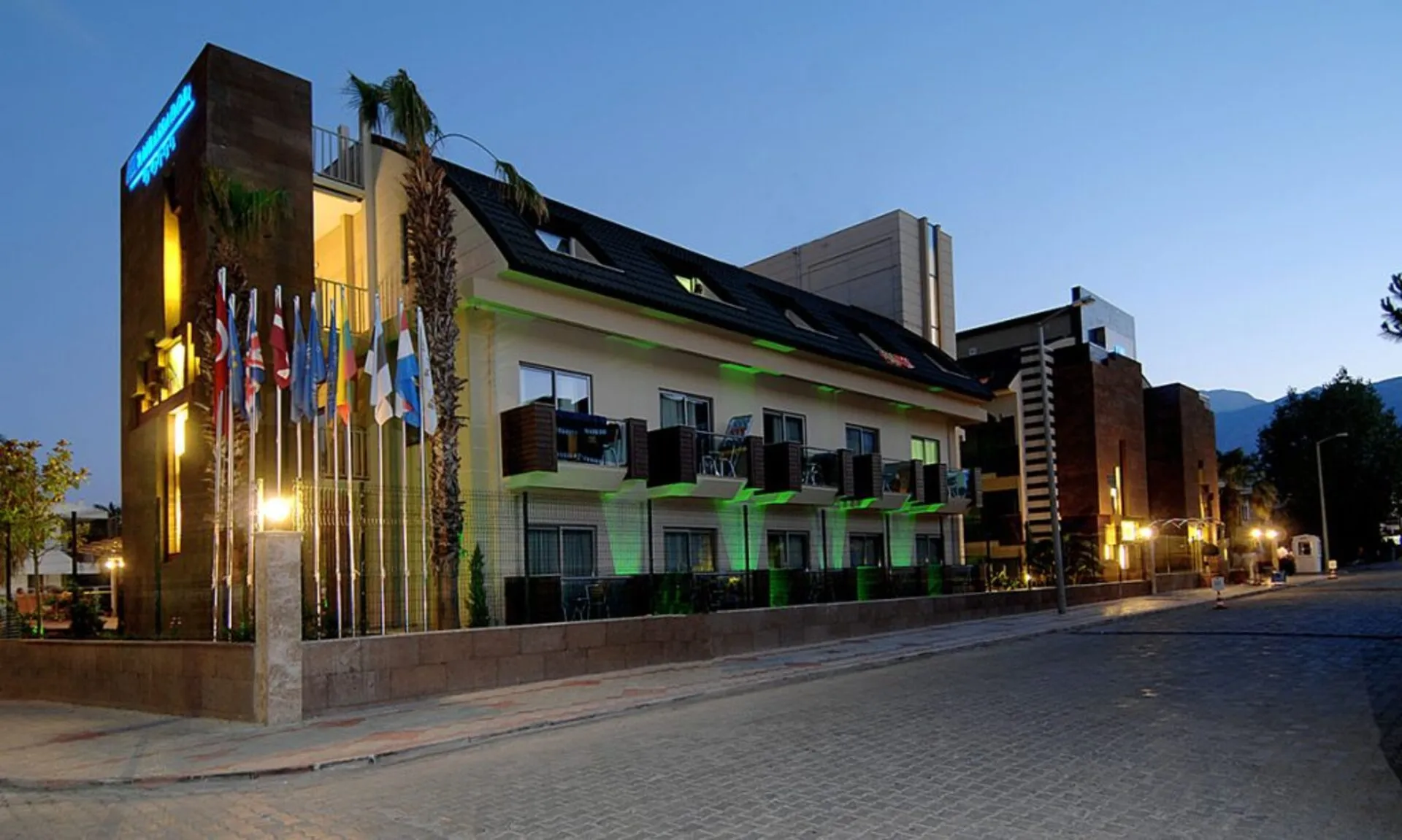 Sports & Leisure To keep your fitness up on holiday, there is a gym for guests to use. During your holiday you can also take part in aerobics courses. Also darts is offered at the hotel. For cyclists there is a storage room. A sauna awaits you for relaxation. The hotel also offers massages. Let yourself be pampered in the Hamam. Spend some healthy and relaxing hours with fango, hot stone therapy as well as brine baths. Infants can be looked after in the hotel`s own baby club. For older children the care takes place in the children`s club. There is a babysitting service in the hotel. Junior hotel guests can also let off steam in the mini disco. In terms of adult entertainment, evening shows and live music are presented. Additional information The 7-storey hotel, newly built in 2023 and last renovated in 2023, has a total of 144 rooms. One of these rooms offers disabled access. The facility is exclusive to adult guests. The hotel staff speak English, German, Russian, Dutch, Arabic and Turkish.