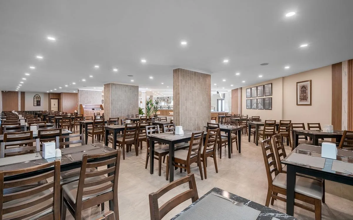Completely renovated in 2025, the city hotel has 100 rooms in total. It is equipped with a reception (check-in from 14:00, check-out until 12:00), a lobby with bar, 5 lifts, an air conditioning as well as a security entry system. For the meals, there is a restaurant (air-conditioned) and a snack bar (open from 11:00 - 16:00). You will be warmly welcomed in both the hotel’s bars. WiFi can be used by hotel guests for a fee. Laundry / ironing service and medical service are available for a fee. Pool: In the outdoor area of the hotel you will find one fresh water pool (approx. 160 m²) with a separate children´s pool. Here, there are sun umbrellas and sun loungers for free available. Refreshing beverages can be consumed directly at the pool bar (open from 10:30 - 18:30).