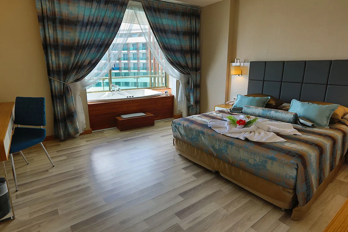 Dotări camere: baie cu cadă/ duș, uscător de păr, TV LCD satelit, telefon, acces internet Wi-Fi, aer condiţionat, seif, mini-bar, balcon.