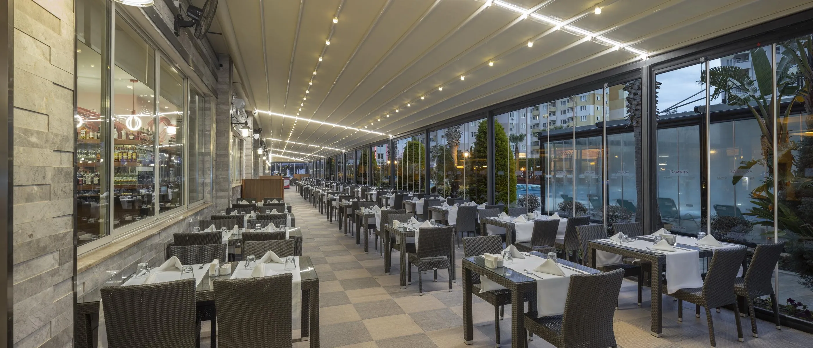 The hotel Ramada Resort by Wyndham Lara is located approx. 330 m from the hotel´s own sandy/shingle beach, linked by a free shuttle service. At the beach are sun umbrellas and sun loungers free of charge available. The tourist centre is about 9 km away. The town Antalya is around 9 km away. The nearest shopping facilities are located approx. 9 km from the hotel. It is 9 km from the hotel to the nearest bars and restaurants. Also the nearest disco is around 9 km away. For mobility during your holiday, there are a taxi rank (around 200 m away) and a car rental company. The airport (AYT) is approx. 17 km away. The hotel and airport are linked by a shuttle (for a fee). Another airport (GZP) is located approx. 0 m away.