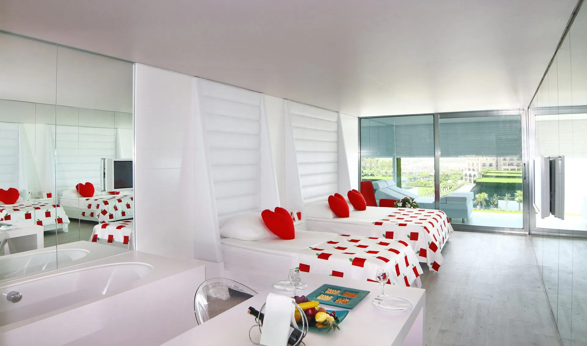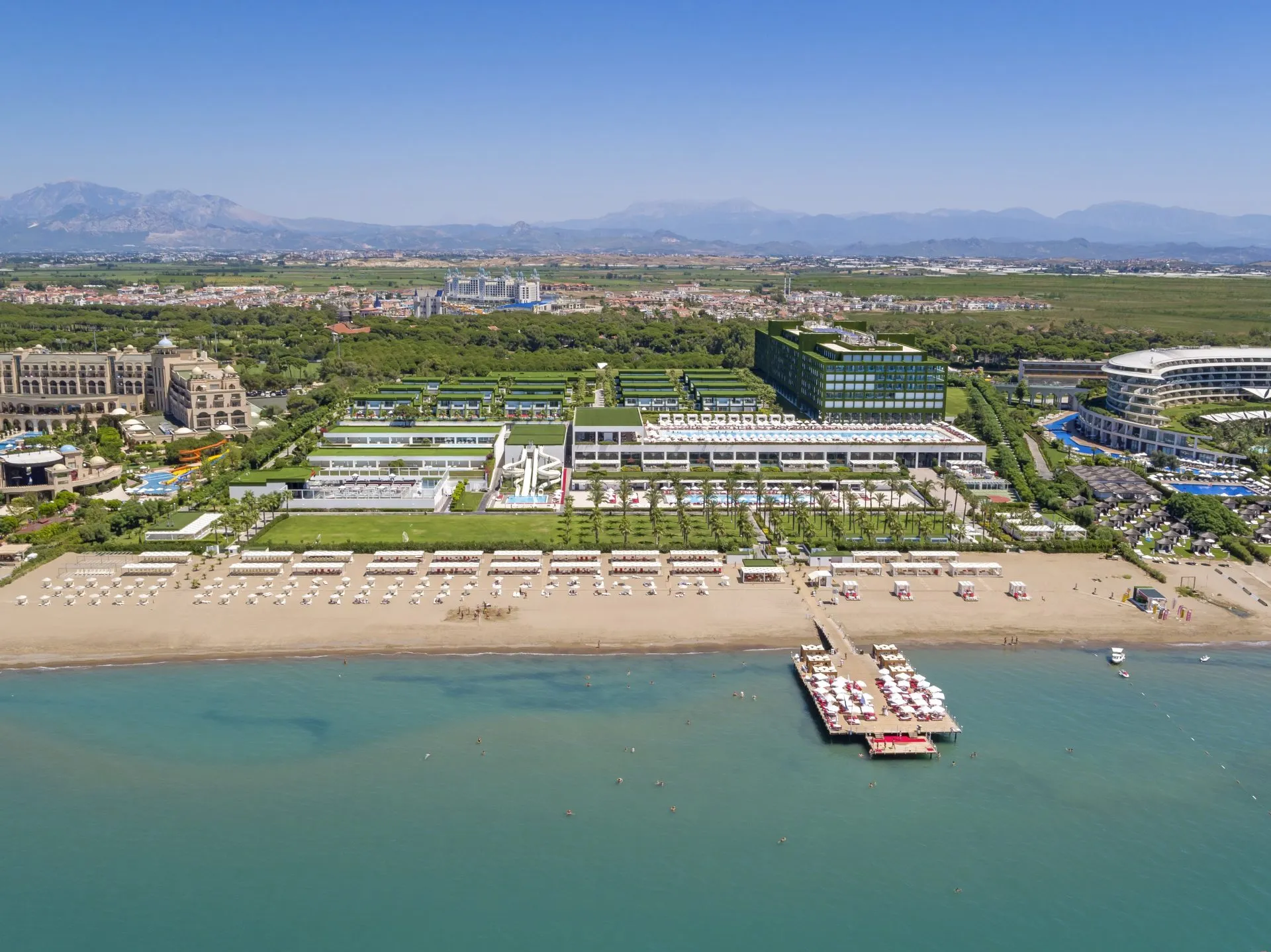 In the vicinity of the sandy beach lies the hotel Adam & Eve Hotels. The beach is patrolled by a lifeguard and awarded a blue flag. Here, there are sun loungers, cushions and sun umbrellas available. Cold drinks are served at the bar on the beach. There is a promenade where you can take leisurely walks. The hotel has a 24h reception, a lobby bar, Wi-Fi, internet access, a lift, a supermarket, a boutique, a hairdresser, a jacuzzi, a first aid kit, parking spaces as well as a TV lounge. At the pool, pool towels are available for free. Furthermore, you can relax outdoors on the sun terrace and in a garden. Inside the hotel you can use an indoor pool. You can store your valuables in the safe, and your luggage in the hotel`s storage room. For your entertainment, the hotel offers a disco. You can spend social time at the beach club. For the young hotel guests there is a playground. There is also a laundry service. Ironing equipment can be borrowed at the hotel. For your comfort the hotel page will ensure you are looked after. If necessary, you can contact the medical centre at any time. The energy supply is 220 Volts. For conventions and other business meetings, the hotel offers a business centre as well as a (auditorium-style) conference area with scanner, overhead projector as well as a catering service. If you want to explore the holiday region, you can use the car rental service close to the hotel (extra fee). For guests on their honeymoon, the hotel has special offers such as personalised rooms/articles, special honeymoon packages, an extra large king size bed or a basket of fruit in the room. In your hotel, a lot of focus is placed on sustainability. This includes the provision of soap, shampoo and lotion dispensers, environmentally-friendly cleaning, the use of a closed-water circuit and environmentally-friendly transportation . Euro/Master Card is accepted as means of payment. Due to its barrier-free facilities , such as barrier-free entrances, wheelchair accessible rooms and wheelchair-accessible bathrooms, the hotel is also suitable for wheelchair users. Catering As catering services the hotel offers all-inclusive. Breakfast is offered from the buffet. Enjoy your lunch from the buffet or as a set meal. Dinner is also served as a buffet or à la carte. For the meals, there are a restaurant with terrace (Italian, calorie-reduced and vegetarian dishes) and the pool bar. For dinner, guests are asked to wear appropriate clothing in the restaurant. Sports & Leisure A sauna and a wellness shower await you in the hotel`s own wellness area. The hotel also offers massages and beauty treatments. Let yourself be pampered in the Hamam and find peace and quiet in the relaxation room. In terms of adult entertainment, evening shows and live music are presented and there is a games room available to use. Additional information This hotel is gay-friendly. The hotel staff speak English, German, Russian and Turkish.