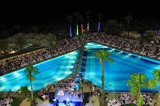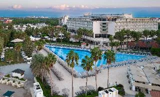 In the vicinity of the sandy beach lies the hotel Adora Hotel & Resort. There is a 24h shuttle between the hotel and the airport 24h a day. The beach is patrolled by a lifeguard. On the beach there is also a clubhouse. Here, there are sun loungers available. At the beach there is a bar serving refreshing drinks. The hotel has a 24h reception, a lobby bar, Wi-Fi, internet access, a lift, a shop, a boutique, a hairdresser, a jacuzzi, parking spaces as well as a TV lounge. In the outdoor area of the property you will find a garden as well as a seasonally heated and supervised pool (open all year), where sun loungers are available for free. For children there is also a children's pool. Inside the hotel you can use an indoor pool. You can store your valuables in the safe, and your luggage in the hotel`s storage room. For your entertainment, the hotel offers a disco. For the young hotel guests there is a playground. For very young guests, highchairs can also be provided. For the smallest children prams can be rented in the hotel. There is also a laundry and ironing service. Ironing equipment can also be borrowed at the hotel. For your comfort the hotel page will ensure you are looked after. If necessary, you can contact the medical centre at any time. For conventions and other business meetings, the hotel offers a business centre as well as a (auditorium-style) conference area with printer. If you want to explore the holiday region, you can use the car rental service close to the hotel. For guests on their honeymoon, the hotel has special offers such as champagne or a basket of fruit in the room. In your hotel, a lot of focus is placed on sustainability. This includes the provision of soap and shampoo dispensers, organic food, a central room air-conditioning and environmentally-friendly cleaning. The hotel requires that all guests pay a deposit upon arrival. Catering As catering services the hotel offers all-inclusive. Dinner is served à la carte. As part of the all-inclusive service, water (24h), softdrinks (24h), beer (24h) as well as wine (24h) are available at no extra charge. For the meals, there are a restaurant (calorie-reduced dishes) and a 24h snackbar as well as the pool bar. The drinks menu of the hotel includes water, soft drinks, beer and wine. Sports & Leisure To keep your fitness up on holiday, there is a gym for guests to use. At the beach, you can take advantage of various water sports, including bananaboats, jet skiing and water skiing. There is also the option to play billiards. With beach volleyball and darts various other sports offer a lot of variety on holiday. A sauna awaits you in the spa. The hotel also offers beauty treatments. Let yourself be pampered in the Hamam. Infants can be looked after in the hotel`s own baby club. For older children the care takes place in the children`s club. There is a babysitting service in the hotel, so that adults can also find some time to relax. The mini disco also offers age-appropriate entertainment for young hotel guests. In terms of adult entertainment, shows are organized in the evening and there is a games room available to use. Some of the sports are already included in the price.