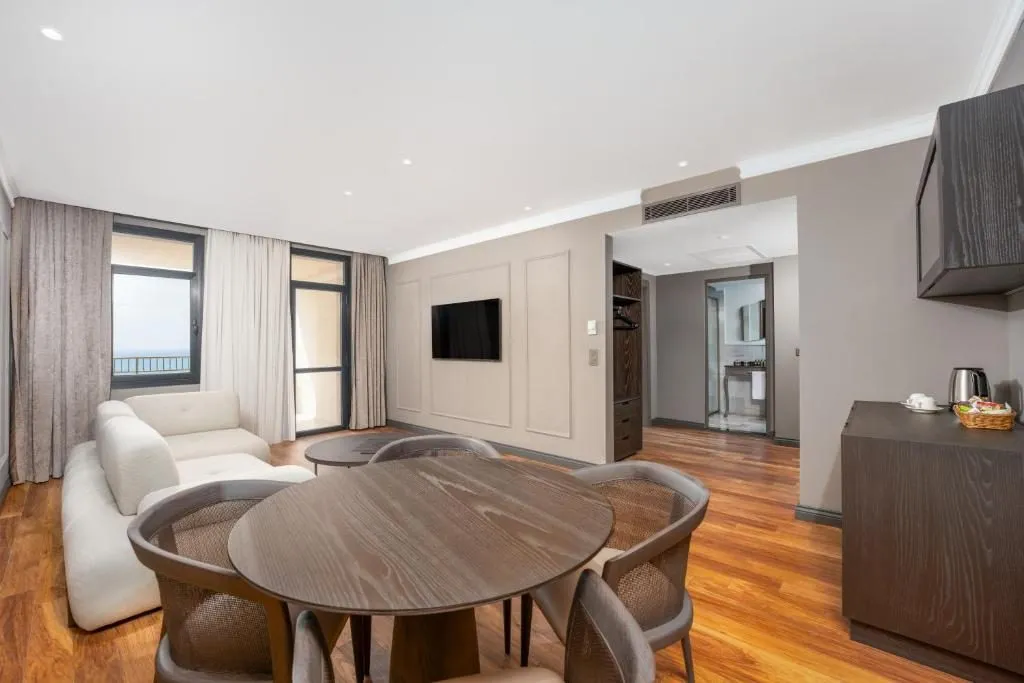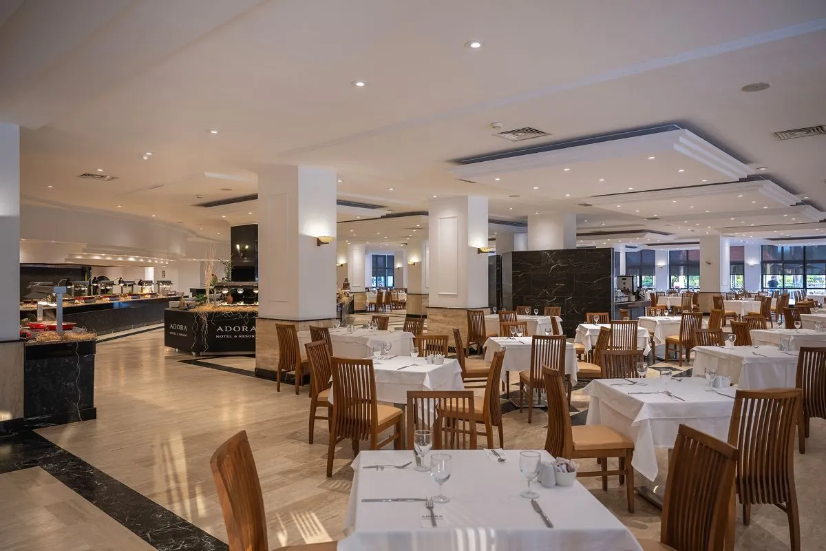 Descriere generala: Acces internet Wi-FiCentru Wellness & Spa6 tobogane acvatice pentru adulţi şi copii Principalele puncte de atracție: Conexiune Wi-Fi fara plata pe tot domeniul complexuluiPlaja cu nisip Centru Wellness & Spa6 tobogane acvatice pentru adulţi şi copiiRecomandat pentru un sejur de activ Descriere hotel: Hotelul Adora, renovat in 2023, se desfasoara pe un domeniu de 116.000 mp, avand o plaja privata cu nisip, lunga de 270 m. Acesta este compus din 3 cladiri si anume cladirea principala, cladirea anexa (ambele renovate) cat si o zona cu bungalow-uri. Facilități si dotari camere: Hotelul dispune de urmatoarele tipuri de camere:Club rooms land view -camere in bungalow-uri, situate in gradina hotelului, cu o suprafata de 30 m². Ele sunt recomandate unei formule de cel mult 3+1 (0-2,99), avand un pat dublu sau 2 paturi twin si un sofa-bed.Eco Rooms land view – situate in cladirea principala, sunt camere fara balcon, cu o suprafata de 26-32 m², acestea pot gazdui o formula de cel mult 3+1 (0-2,99), avand fie un pat dublu si unul single sau 3 paturi single.Standard sea view rooms -  camere cu balcon, situate in cladirea principala, cu o suprafata de 26-32 m², acestea pot gazdui o formula de cel mult 3+1 , avand fie un pat dublu si unul single sau 3 paturi single.Standard land view rooms-  camere cu balcon, situate in cladirea anexa, cu o suprafata de 26-30 m², acestea pot gazdui cel mult 3 persoane, avand fie un pat dublu si unul single sau 3 paturi single.Family duplex land view – localizate in cladirea anexa, cuprind doua camere pe 2 etaje, fiecare camera avand 36 m²,acestea pott gazdui maximum 4 persoane, avand in egala masura 2 bai. Dotӑri camere: baie cu dus,  minibar (bauturi racoritoare si bere), seif, televizor, canale prin satelit, canale de muzica, conexiune internet, telefon direct, aer conditionat centralizat, papuci de baie, oglinda, uscator de par, balcon.  Sport și relaxare: Centru de spa, sala de fitness, fotbal, 12 terenuri de tenis, muzică live, petreceri, tenis de masă, darts, boccia, cursuri de dans, aerobic, jocuri la piscină, sporturi nautice. Facilități pentru copii: Mini club (pentru copiii cu vârsta cuprinsă între 4-12 ani; deschis în intervalul orar 10:00-12:30 şi 14:30-17:00), spaţiu de joacă, cinema, jocuri electronice, meniu în restaurant, piscină exterioară, piscină interioară, 1 tobogan acvatic, pătuţ (la cerere), cărucior (la cerere, contra cost). Facilități gratuite: Minibar, seif, gustari in timpul zilei, inghetata, placinte turcesti, o cina a la carte gratuita pe durata sejurului (rezervare necesara in prealabil), bauturi alcoolice si non-alcoolice locale si o selectie de import, conexiune wireless pe tot domeniului hotelului, sala de fitness, baie turceasca, sauna, baie cu aburi, terenuri de tenis, terenuri de fotbal, aerobic, animatie si spectacole pentru copii si adulti, miniclub si facilitati pentru copii, seri tematice, aqua park, loc de joaca pentru copii. Facilități contra cost: Anumite băuturi locale și de import, toate băuturile îmbuteliate, sucuri proaspete, serviciile de Spa & Wellness, salon de înfrumusețare, telefon, fax, serviciu de spălătorie/calcătorie, servicii medicale, room service (mâncăruri și băuturi), cărucioare pentru copii, închiriere mașina, pavilioane. Regim de masă: Ultra All Inclusive: mic dejun, prânz, cină, gustari,  băuturi alcoolice și non-alcoolice locale si o selectie de bauturi de import.Serviciu de servire a mesei de 24h. Cină în restaurantele a la Carte cu rezervare în prealabil Bine de stiut: Facilitati pentru persoanele cu handicap. Locatia: Hotelul este amplasat la o distanţă de 5 km de centrul celui mai apropiat oraş Kadriye, la 19 km de Aspendos, la 26 km de aeroportul din Antalya şi la 39 km de centrul oraşului, la 45 km de staţiunea Side şi la 105 km de staţiunea Alanya. Soare si mare: Hotelul dispune de o plaja privata cu nisip, lunga de 270 m, ponton; o piscina in aer liber pentru adulti si una de copii cat și 2 piscine interioare, una pentru adulti si una pentru copii. Sezlongurile si umbrelele sunt gratuite atat  la plaja cat si la piscina, existand si un serviciu de prosoape pentru plaja. Restaurante si baruri: Restaurantul principal permite servirea meselor de tip mic dejun, mic dejun tarziu, pranz, cina si gustare tarzie;Restaurante de tip snack bar localizate la piscina si la plaja, unde se pot servi gustari intre mesele principale, inghetata, bauturi.Hotelul are si 4 restaurante a la Carte; o data pe sejur, clientii pot beneficia de o cina gratuita pe baza rezervarii in prealabil.