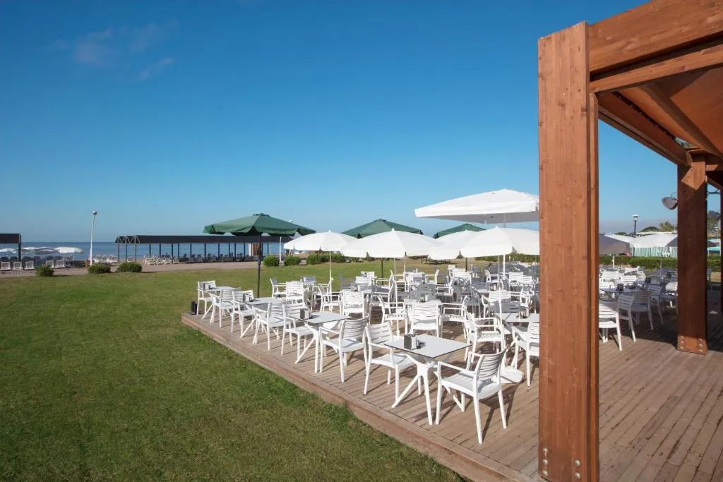 Plajă proprie la o distanță de aproximativ 2 km, (shuttle bus); piscină exterioară (cca. 964 mp), piscină pentru copii (cca. 77 mp), piscină interioară (cca. 130 mp), Aquapark cu 5 tobogane acvatice; Umbrele, șezlonguri și prosoape gratuite, atât pentru plajă, cât și pentru piscină.