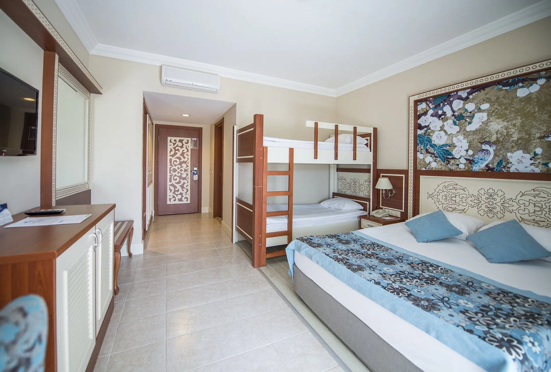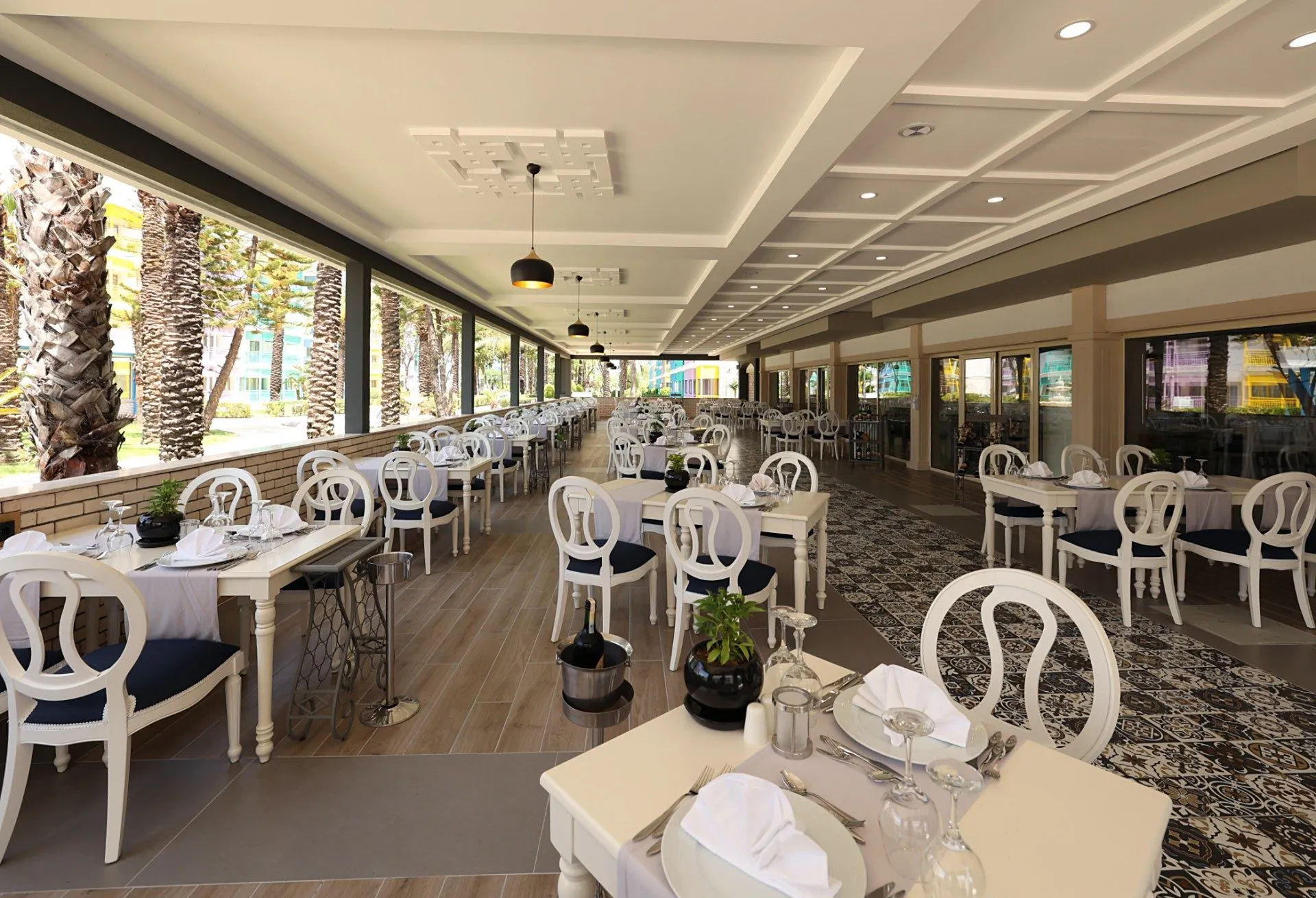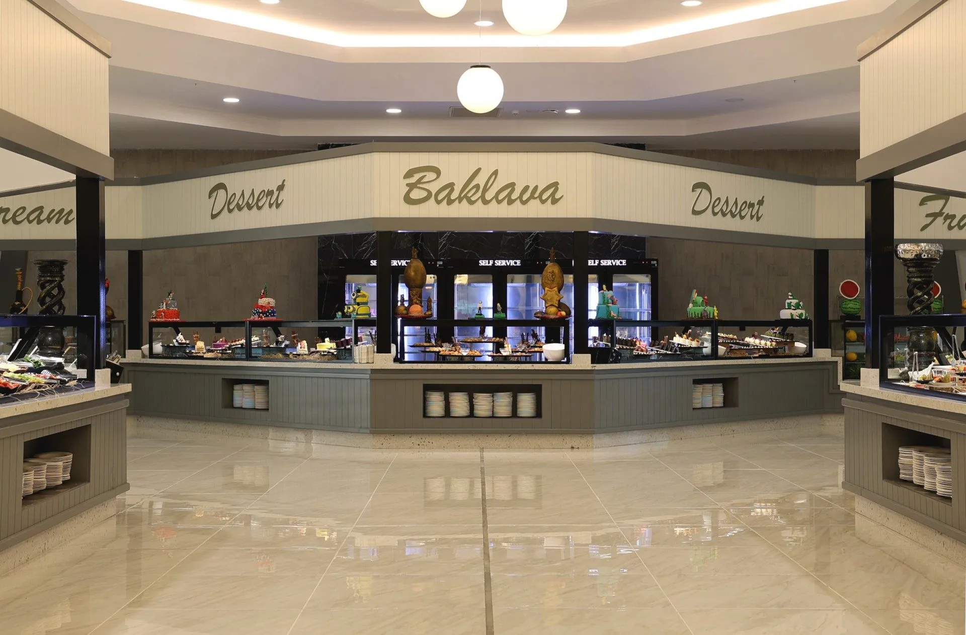 Sports & Leisure To keep your fitness up on holiday, there is a gym for guests to use. A minigolf course offers fun for the family. For an fee, you can take advantage of various water sports, including banana and speedboats, jet skiing, water skiing and water aerobics. If you don`t want to miss out on training with a ball during your holidays, you`ll find a basketball court. During your holiday you can also take part in aerobics courses. There is also the option to play bowling. With beach volleyball, climbing and darts various other sports offer a lot of variety on holiday. In addition to a tennis court (hard court, at extra cost) there is also a tennis school. For cyclists there is a storage room. Cycling maps can also be purchased in the hotel. Furthermore, various water sports such as windsurfing are offered in the area. For snorkelers equipment is provided at a diving rental shop. A sauna and a wellness shower await you in the spa. The hotel also offers massages (extra fee) and beauty treatments (extra fee). Find peace and quiet in the relaxation room. Infants can be looked after in the hotel`s own baby club. For older children the care takes place in the children`s club. There is a babysitting service in the hotel (extra fee) . The mini disco also offers age-appropriate entertainment for young hotel guests. Furthermore there is a youth club. In terms of adult entertainment, evening shows and live music are presented. Additional information The 5-storey hotel has a total of 720 rooms. Of these, 6 rooms have disabled access. Larger groups of young people under the age of 25 are not allowed in this property, as this is a hotel especially for families. This hotel is gay-friendly. The hotel staff speak English, German, French, Russian, Arabic, Bulgarian and Turkish.